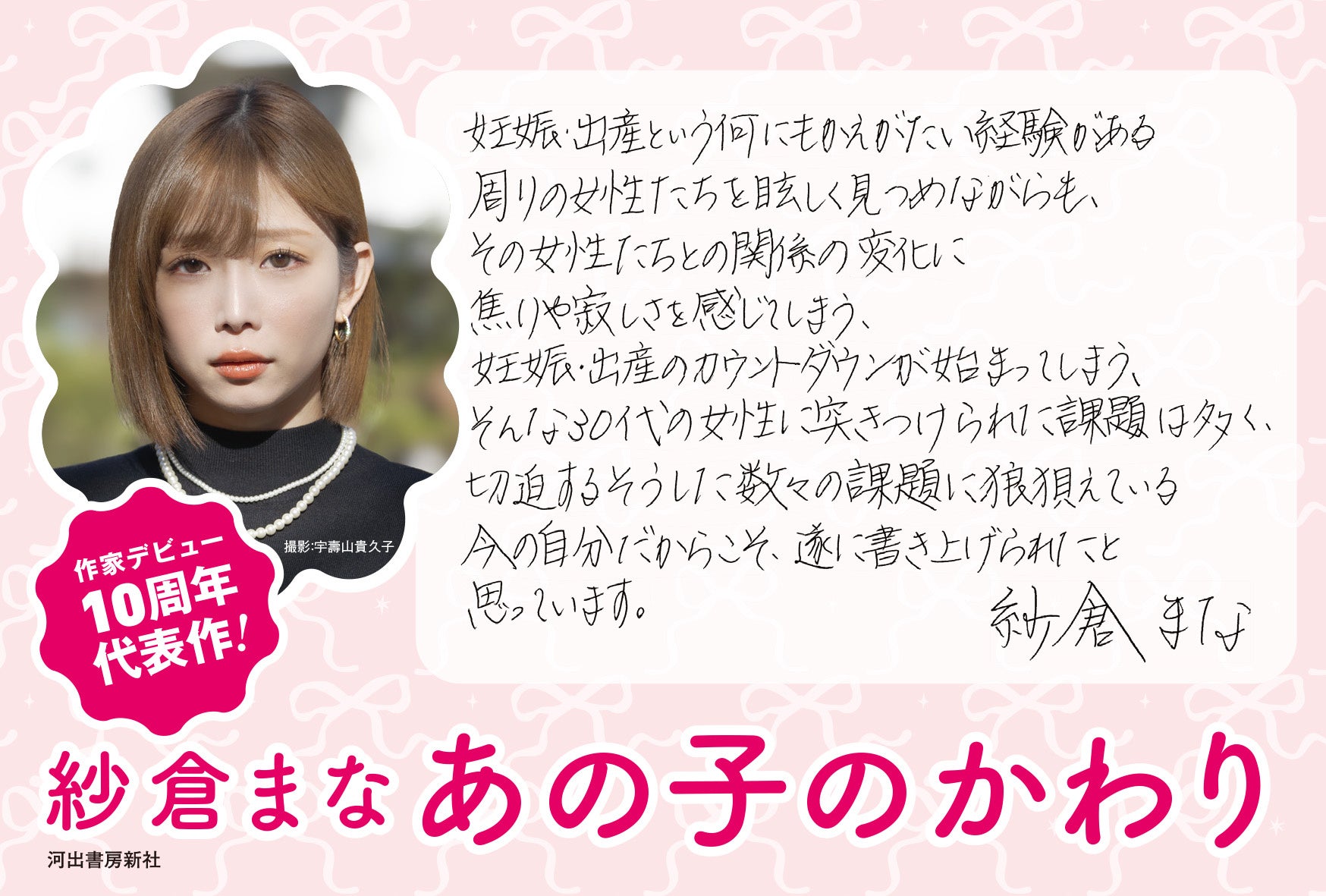 〈作家デビュー10周年〉本日発売! 紗倉まな最新小説『あの子のかわり』は〈妊娠・出産〉への葛藤を描いた超渾身作