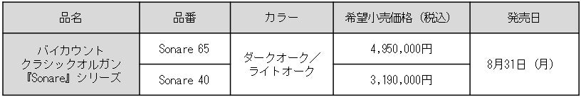 株式会社ヤマハミュージックジャパンは、バイカウント社(※1)のクラシックオルガンのミドルクラスにあたる『Sonare(ソナーレ)(※2)』シリーズを8月31日(月)に発売します。