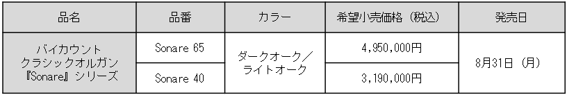 株式会社ヤマハミュージックジャパンは、バイカウント社(※1)のクラシックオルガンのミドルクラスにあたる『Sonare(ソナーレ)(※2)』シリーズを8月31日(月)に発売します。