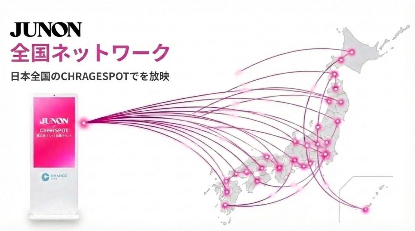 全国の『CHRAGESPOT』デジタルサイネージ放映※「JUNON公式CM」への出演権