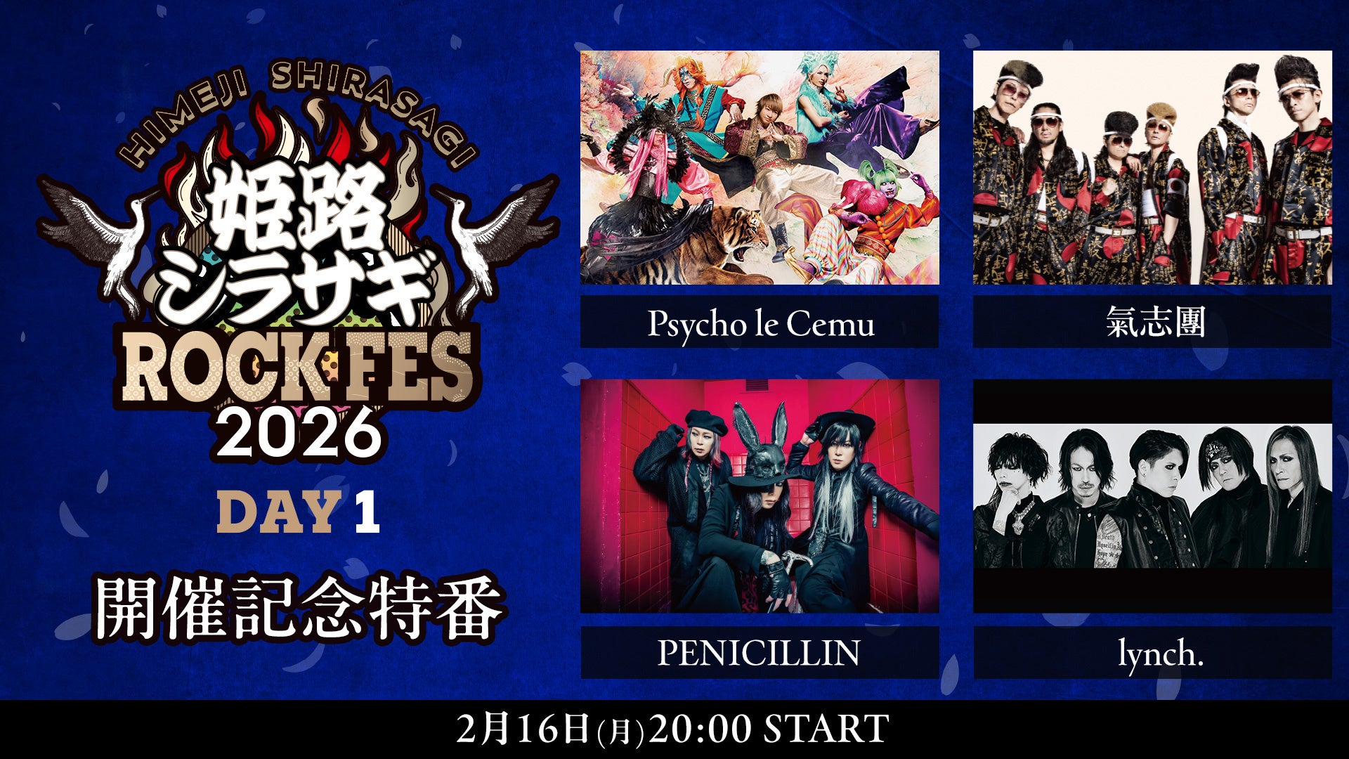 「姫路シラサギROCK FES 2026」を先取り!Psycho le Cemu、氣志團、PENICILLIN、lynch.メンバー生出演の事前番組を、2/16(月)20時よりニコニコ生放送にて放送