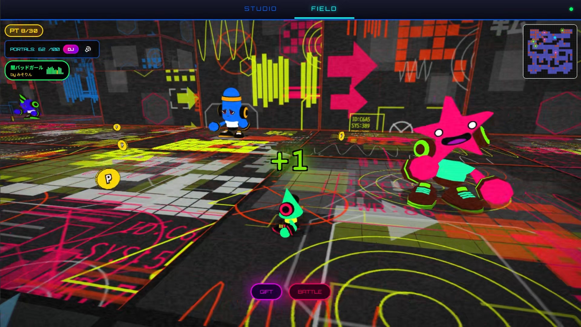 RAVE VERSUS STUDIO、WITCH NOISE STUDIOでは、専用シンセサイザーで制作した楽曲からキャラクターが生成され、ゲームフィールド上で、他のユーザーが生み出したキャラクターとバトルすることができます。