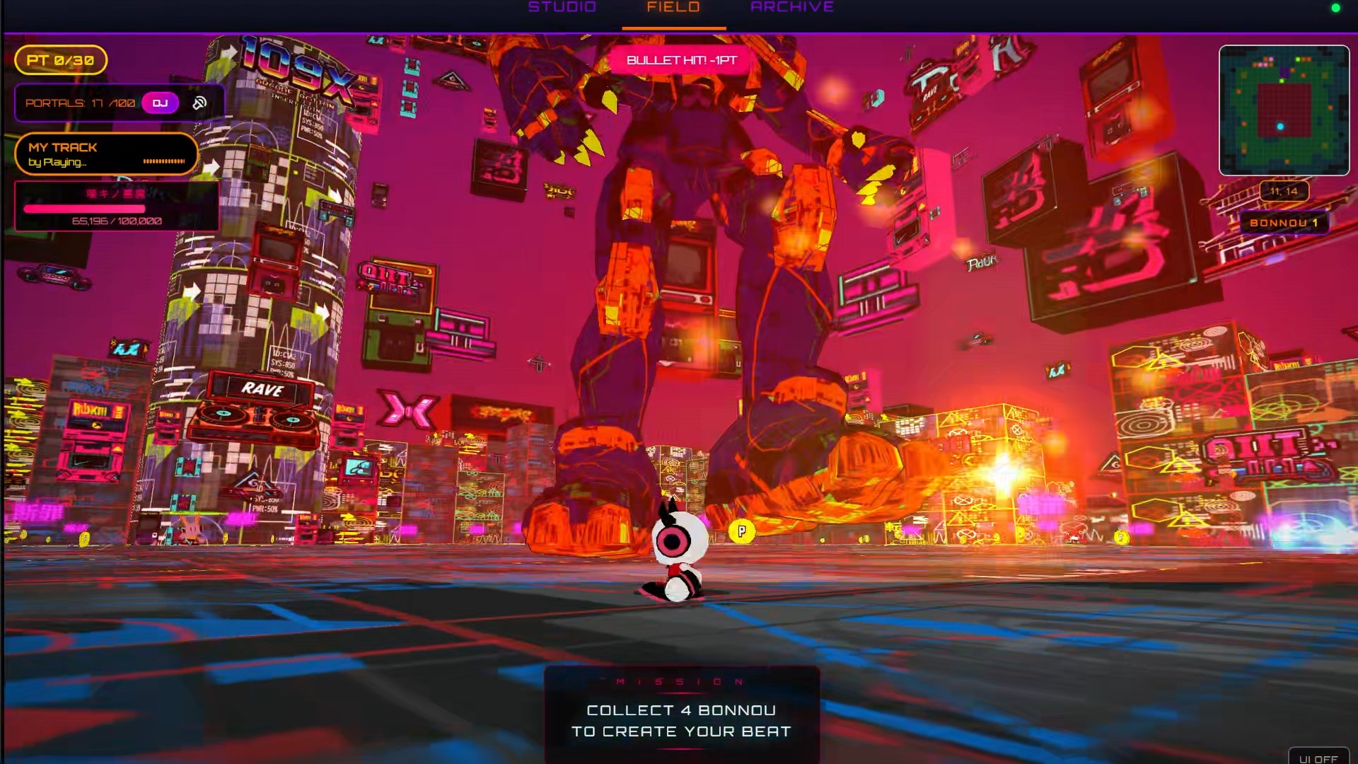 プレイヤーはゲーミングシンセ「BONNOU SHIBUYA STUDIO」にアクセスし、フィールド内に散らばる4つの“煩悩”を集めます。