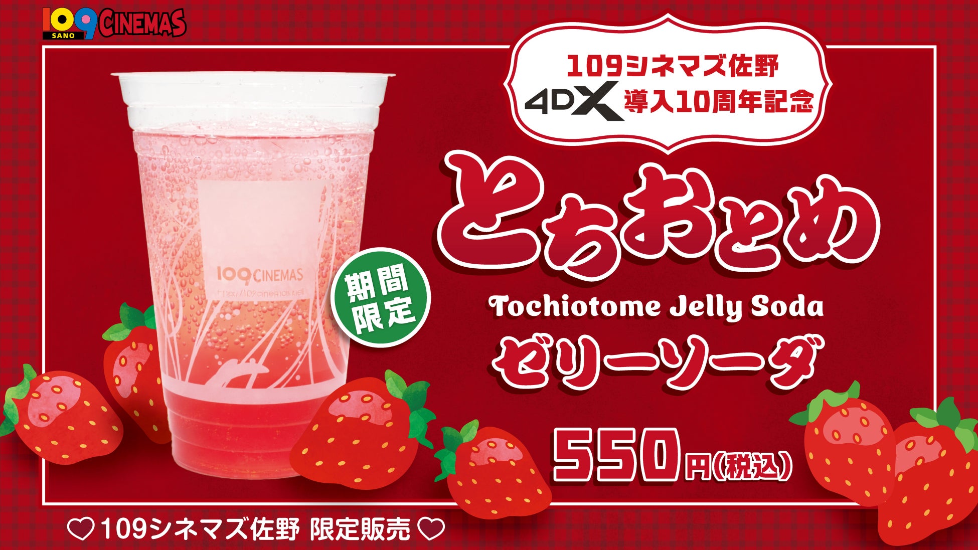 4DX導入10周年を記念したアニバーサリードリンクを「とちおとめゼリーソーダ」飲食売店にて、