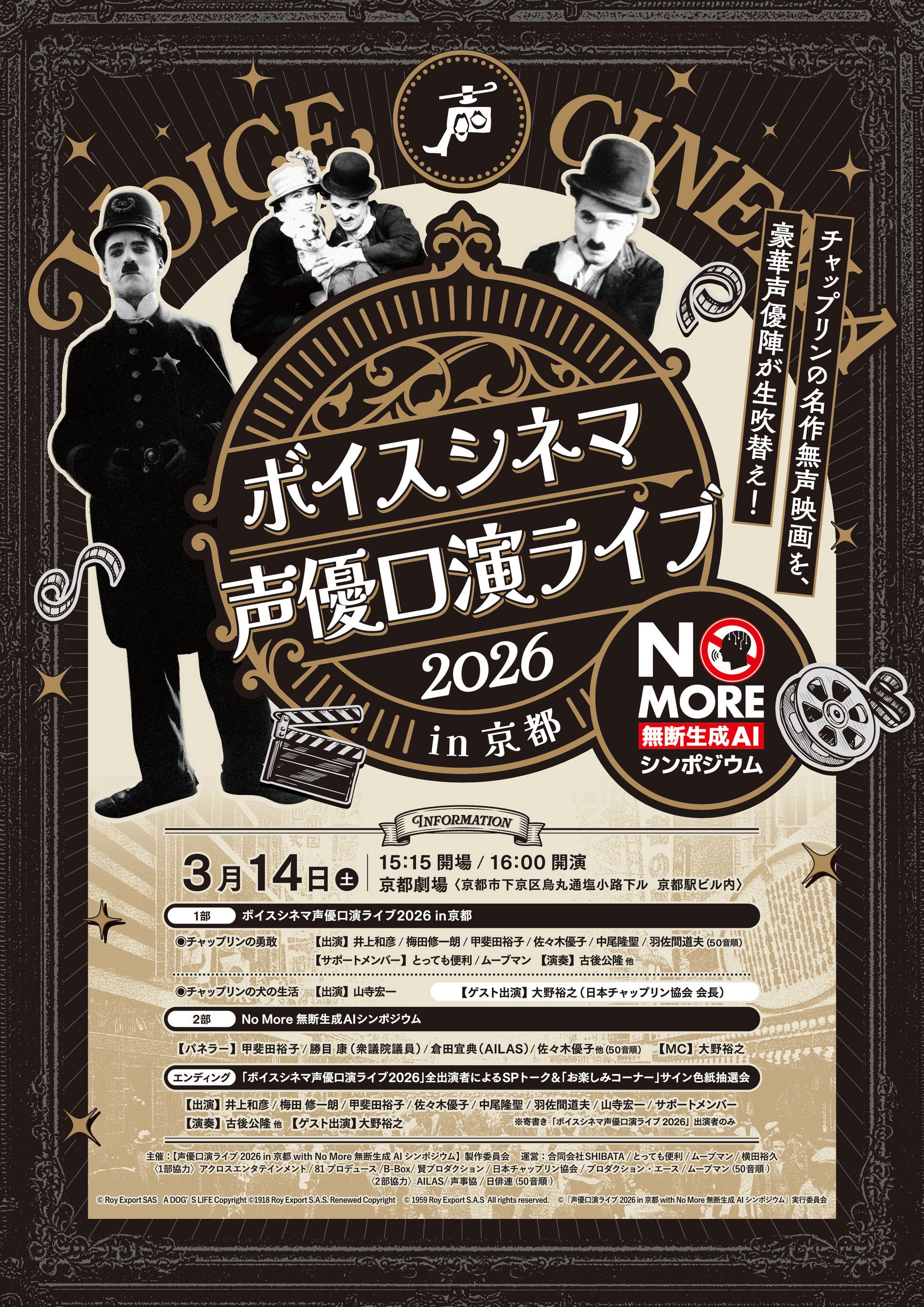 主催:【声優口演ライブ2026in京都 with NoMore無断生成AIシンポジウム】 製作委員会 (合同会社SHIBATA・とっても便利)