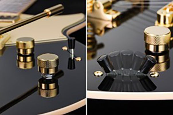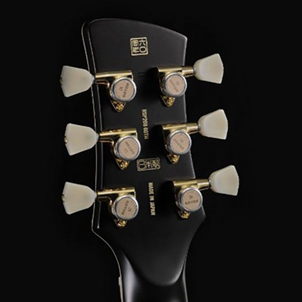 Goldo製トレモロユニットとGotoh製ロック式ペグの組み合わせにより、高いチューニングの安定性とダイナミックレンジ、豊かな表現力を実現。また、牛骨ナットが豊かな倍音とクリアなレスポンスを一層引き立てます。