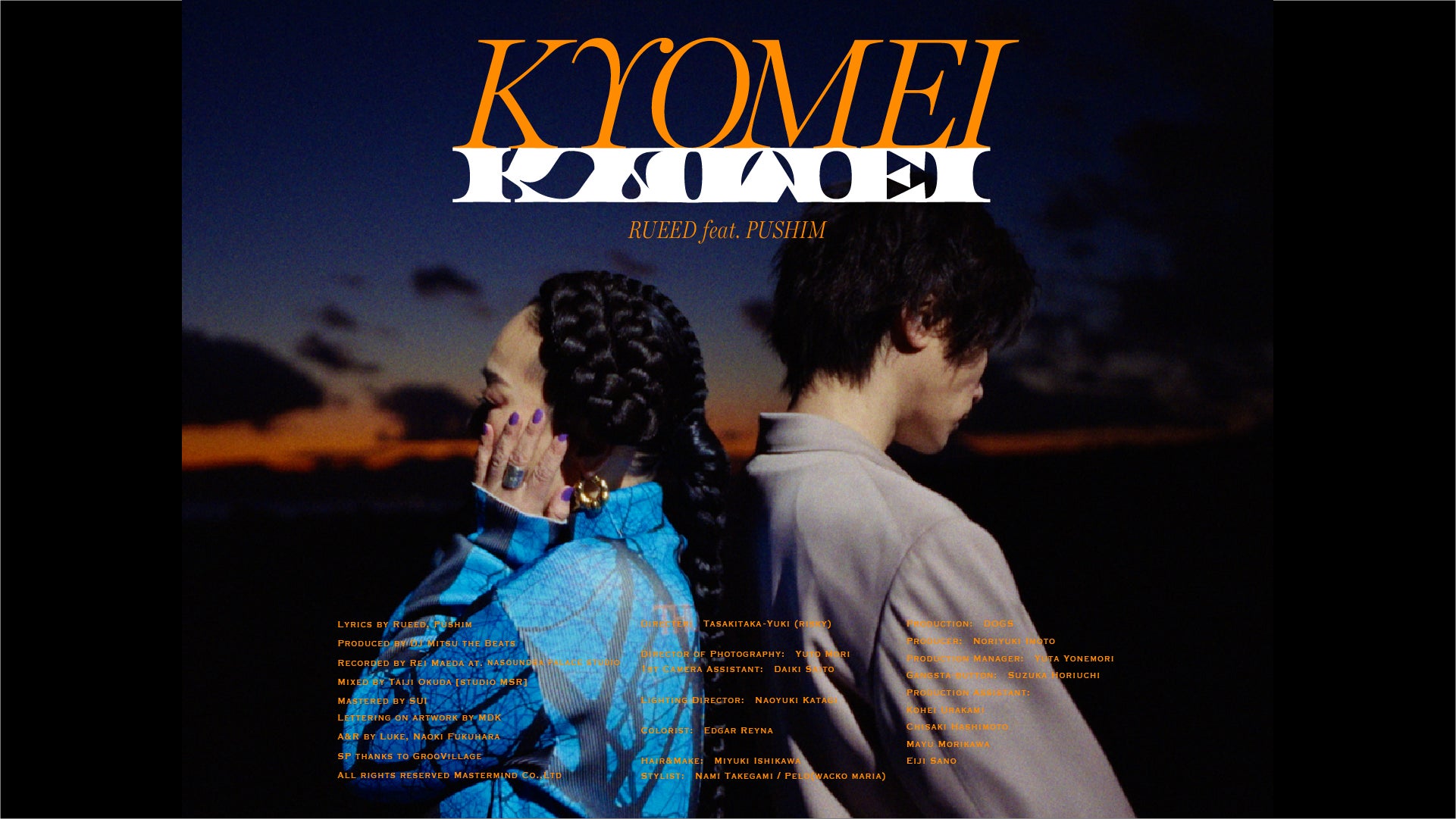 「共鳴」は、目には見えない、形もない、けれど確かにそこに存在する“愛”をテーマに制作された楽曲。温度を帯びたリリックと、DJ Mitsu the Beatsによる奥行きあるトラックメイクが重なり、ラブソングの枠を超えた普遍的なメッセージを浮かび上がらせる。ミュージックビデオは、TASAKITAKA・YUKIがディレクションを担当。RUEEDとPUSHIMの佇まいとロケーションをワンカットで捉えた幻想的な映像作品となっている。余計な演出を削ぎ落とし、二人の存在そのものを映し出すことで、“共鳴”というテーマを視覚的にも体現した。