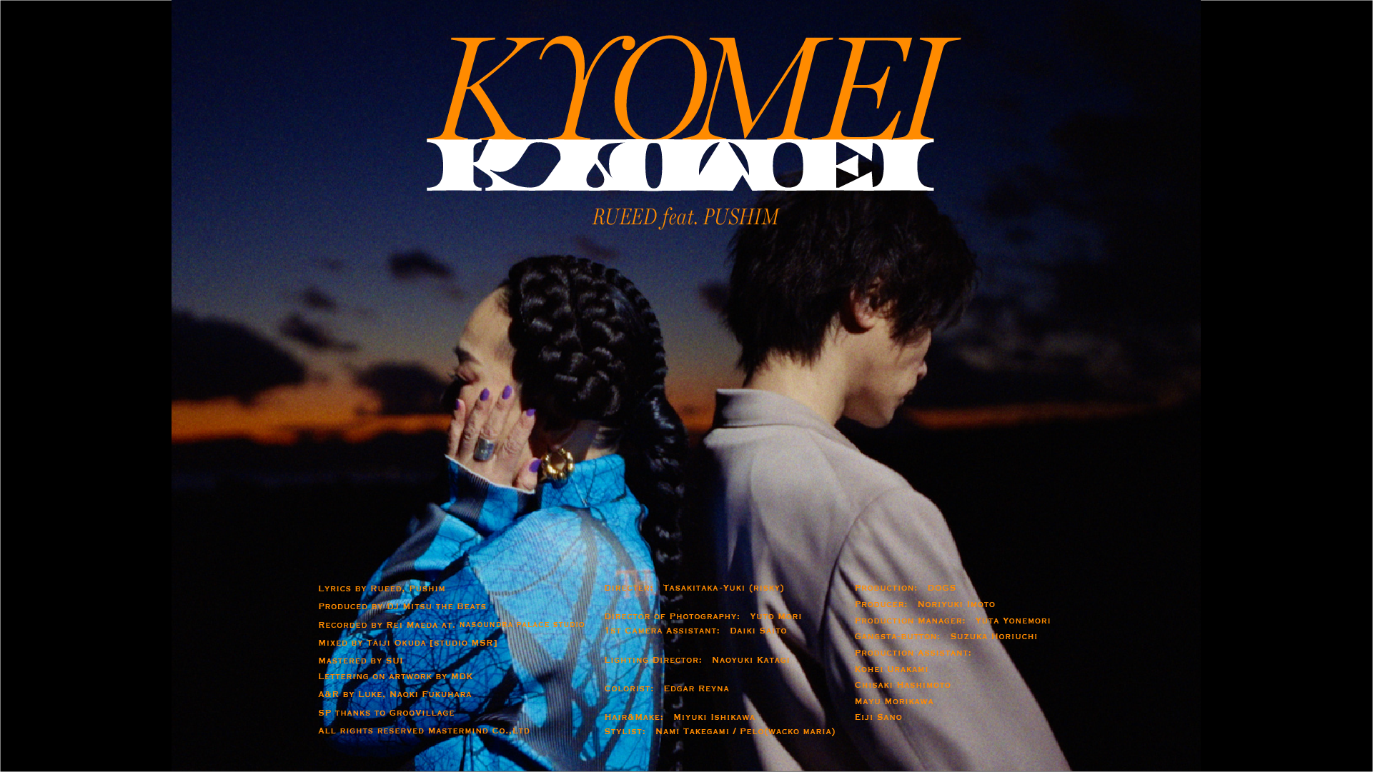 「共鳴」は、目には見えない、形もない、けれど確かにそこに存在する“愛”をテーマに制作された楽曲。温度を帯びたリリックと、DJ Mitsu the Beatsによる奥行きあるトラックメイクが重なり、ラブソングの枠を超えた普遍的なメッセージを浮かび上がらせる。ミュージックビデオは、TASAKITAKA・YUKIがディレクションを担当。RUEEDとPUSHIMの佇まいとロケーションをワンカットで捉えた幻想的な映像作品となっている。余計な演出を削ぎ落とし、二人の存在そのものを映し出すことで、“共鳴”というテーマを視覚的にも体現した。