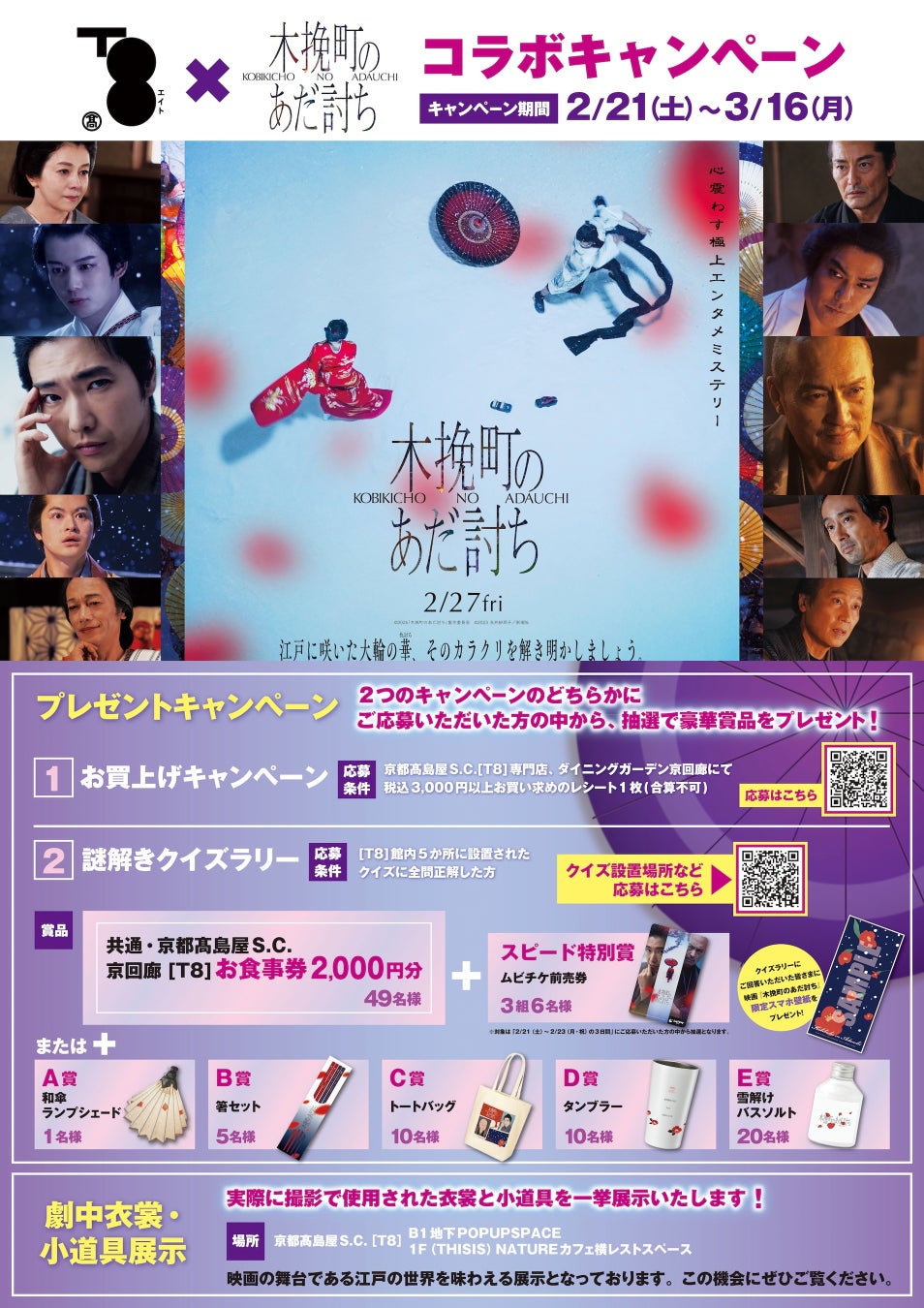 京都髙島屋S.C. 専門店ゾーン[T8]は、2026年2月27日(金)公開の映画『木挽町のあだ討ち』とのタイアップ企画として、館内回遊型の「謎解きクイズラリー」および「お買い上げキャンペーン」を実施いたします。
