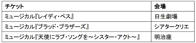 本商品券での購入者限定の人気公演チケットは以下の通りです。なお、2026年3月末までの販売となります。