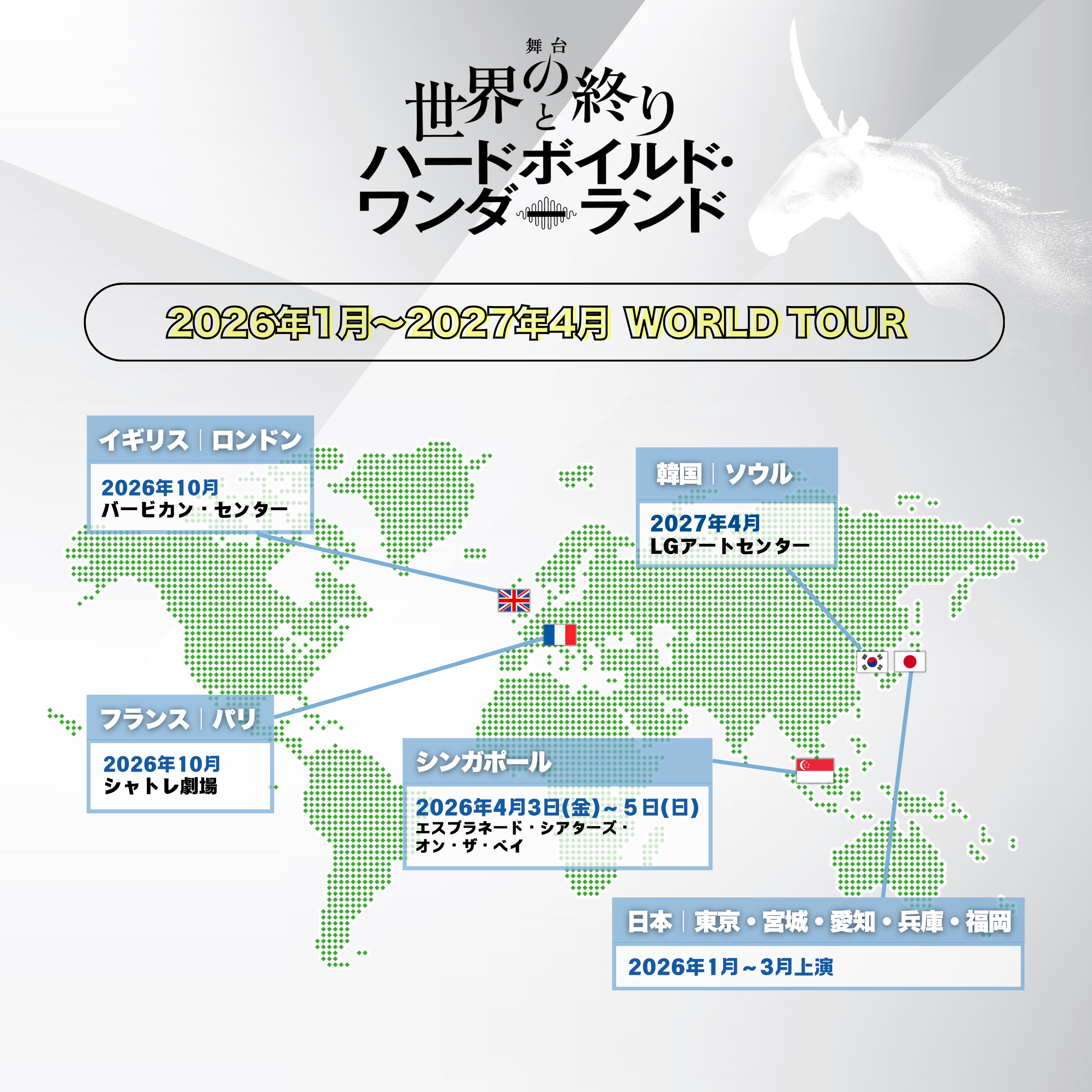 2026年1月に開幕し好評を得ている舞台『世界の終りとハードボイルド・ワンダーランド』は、東京・宮城・愛知・兵庫・福岡での公演後、各国からの熱烈なオファーによって、日本公演と同じ出演者によるワールドツアーが実現する。