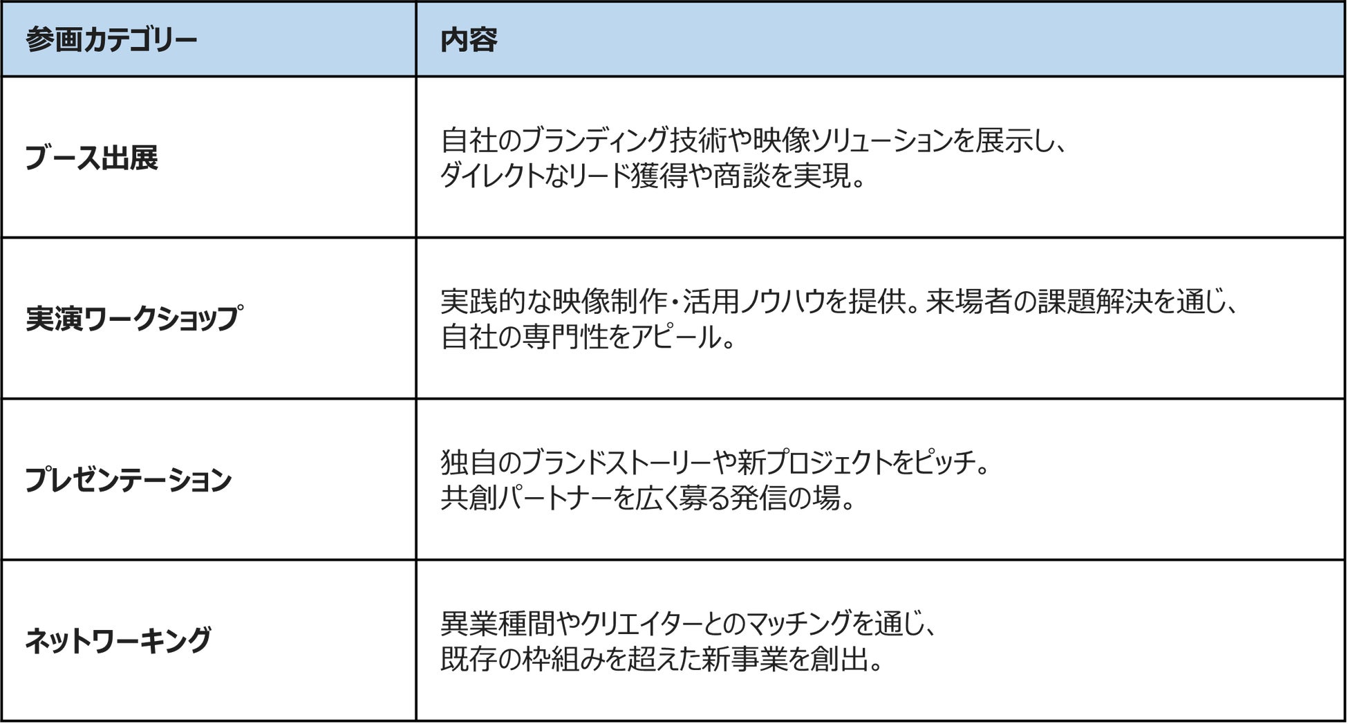 単なるショウケースではなく、映像(=VISUAL)という強力なツールを軸に、あらゆるブランド戦略、次世代の人材育成、そして新たな価値を生むビジネスマッチングを加速させる共創の場へ。