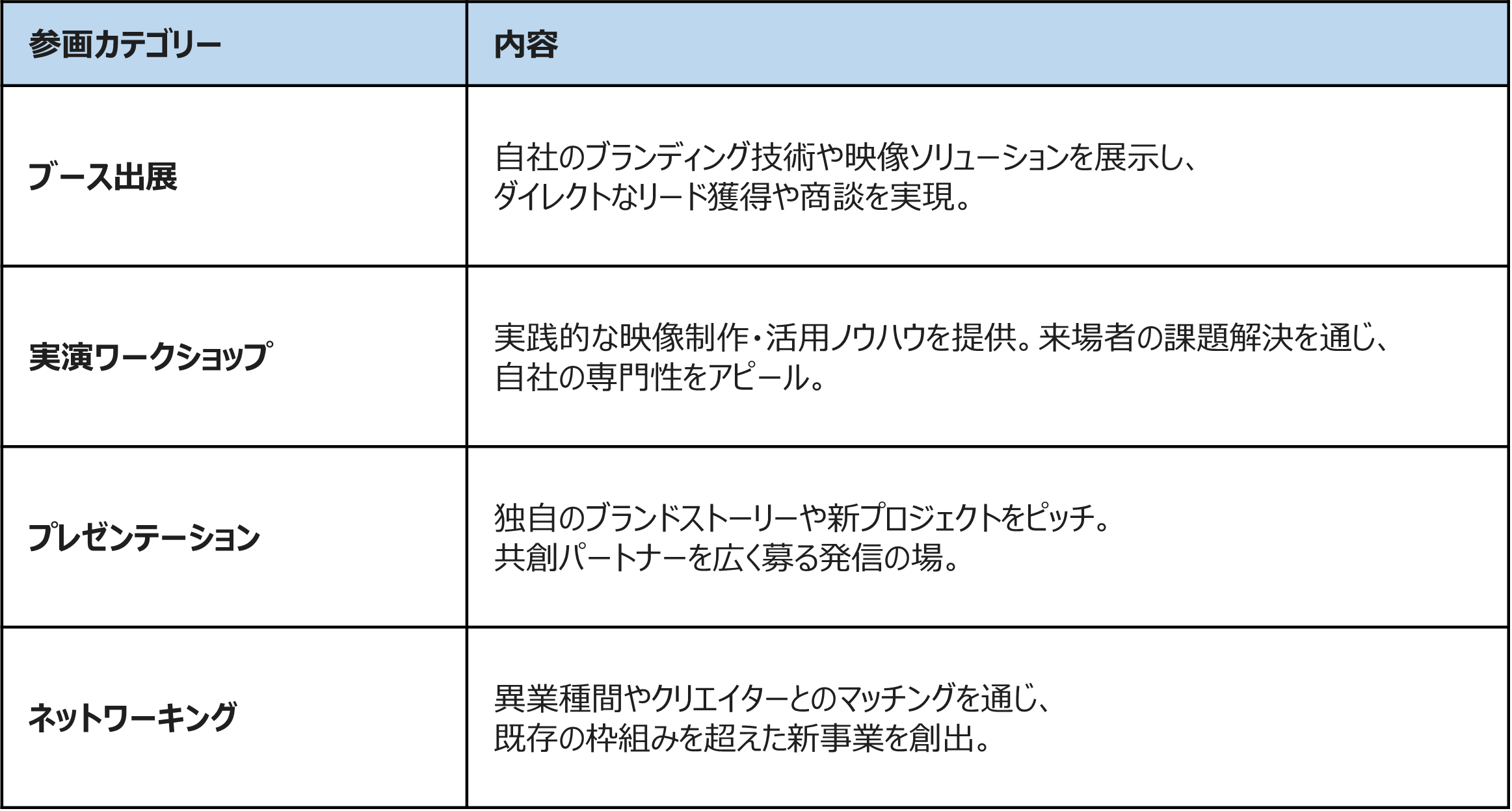 単なるショウケースではなく、映像(=VISUAL)という強力なツールを軸に、あらゆるブランド戦略、次世代の人材育成、そして新たな価値を生むビジネスマッチングを加速させる共創の場へ。