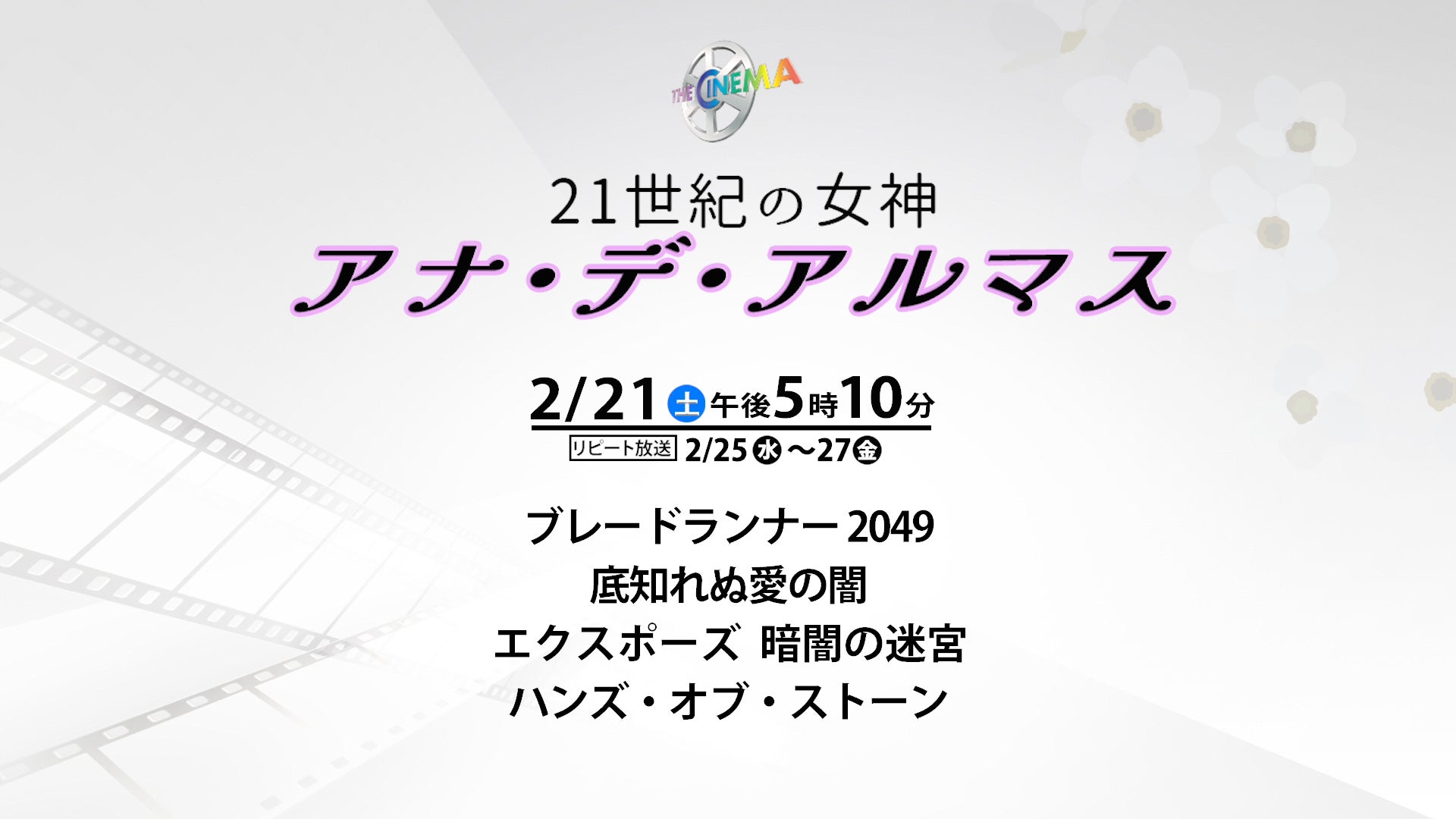 日本唯一(*)の洋画専門チャンネル ザ・シネマ(AXN株式会社、本社:東京都渋谷区、代表取締役社長 野島亮司)では、超人気シリーズ「ジョン・ウィック」のスピンオフとして2025年に公開され話題となった『バレリーナ The World of John Wick』の主演で、一躍注目女優にジャンプアップしたアナ・デ・アルマスを特集!国内TV初放送となる『底知れぬ愛の闇』や、彼女の名を知らしめた『ブレードランナー 2049』など、全4作品を2月21日(土) に放送いたします。