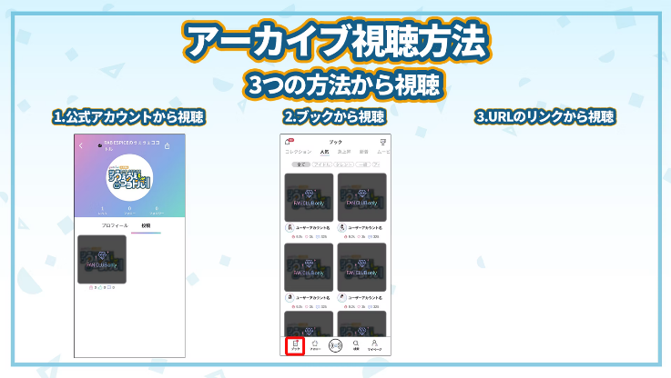 お気に入りの配信者の配信内でコメントすることで会話を楽しんだり、イベントに参加している配信者にギフトを贈ることで活動を応援することができます。