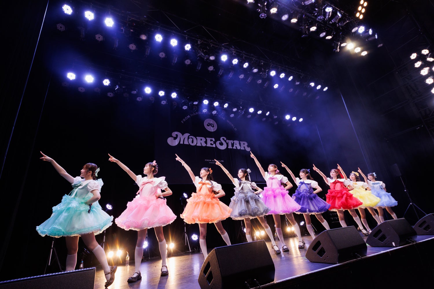 ラストは再び彼女たちのライブの人気曲「ハグ!」をパフォーマンス。豊洲PIT公演決定の発表を受け、涙ぐみながら歌声を重ねるメンバーの姿も印象的で、高揚感を保ったまま『1st STAR』は大盛況のうちに幕を閉じた。MORE STAR初の単独ライブは、グループ名に込められた「もっと成長して輝く」という意志を形にしたステージだったと、会場で見届けた観客の多くが感じたはずだ。