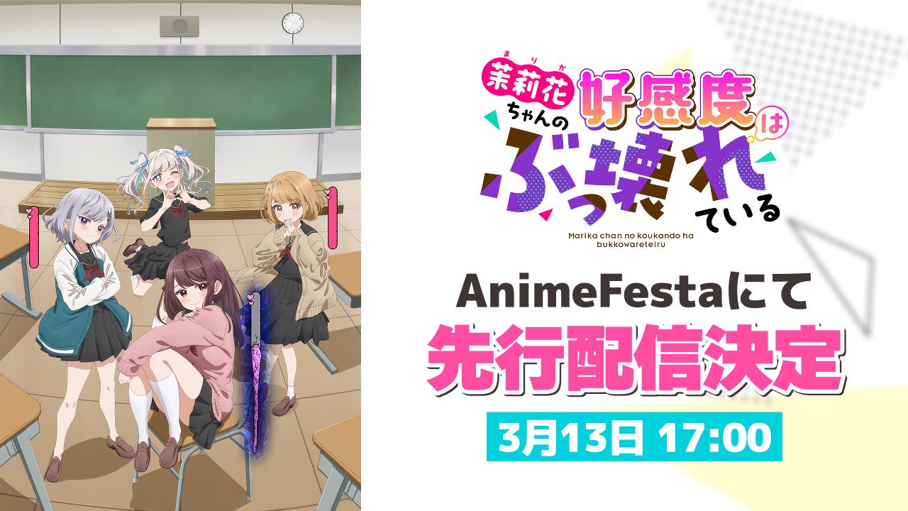 株式会社ウェイブ(本社:東京都豊島区、代表:関口航太)が運営するアニメ見放題サービス「AnimeFesta(アニメフェスタ)」にて、2026年3月13日(金)17:00より、TVアニメ『茉莉花ちゃんの好感度はぶっ壊れている』を独占先行配信することが決定しました。