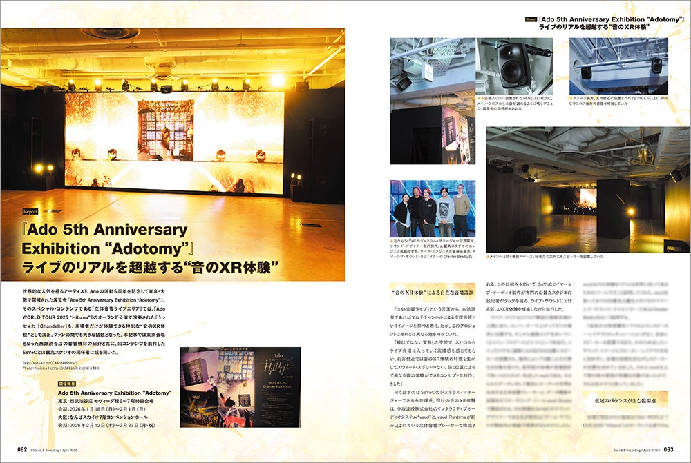 Adoメジャー・デビュー5周年を記念し、東京・西武渋谷店と大阪・なんばスカイオで開催された『Ado 5th Anniversary Exhibition “Adotomy”』。このたび取材したのは、展覧会内のアトラクションの1つ「オーランド公演 立体音響ブース」。そのシステムの仕組みや構築方法について、設計を手掛けたSoVeC社にインタビューできたのでレポートしていこう。