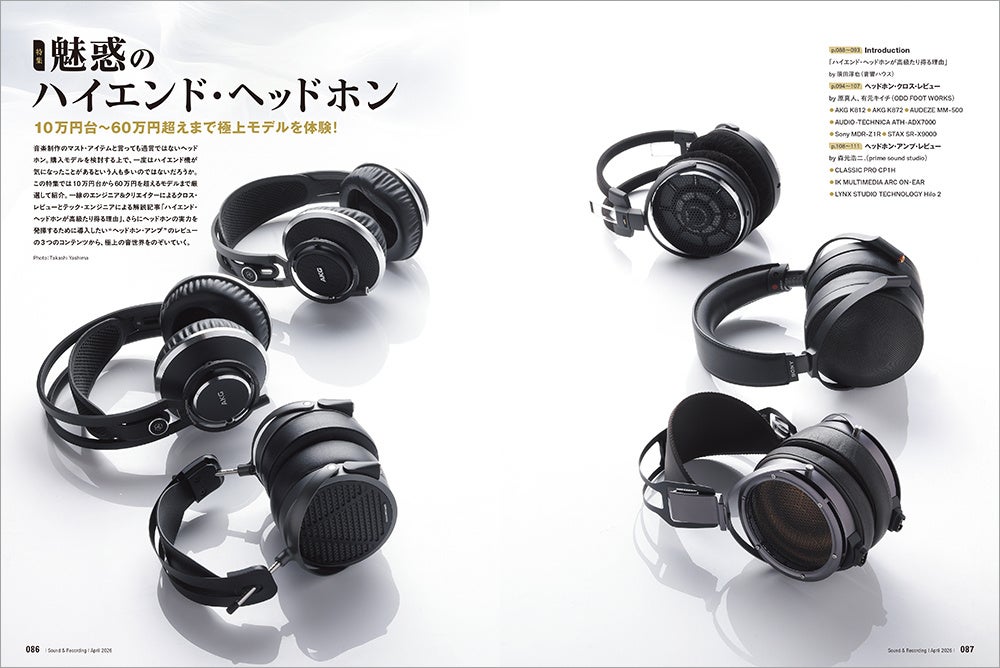 この特集では10万円台から60万円を超えるモデルまで厳選して紹介。一線のクリエイター&エンジニアによるクロス・レビュー、ヘッドホン・アンプ紹介、テック・エンジニアによる解説記事「ハイエンド・ヘッドホンが高級たり得る理由」の三段構えで、極上の音世界をのぞいていく。