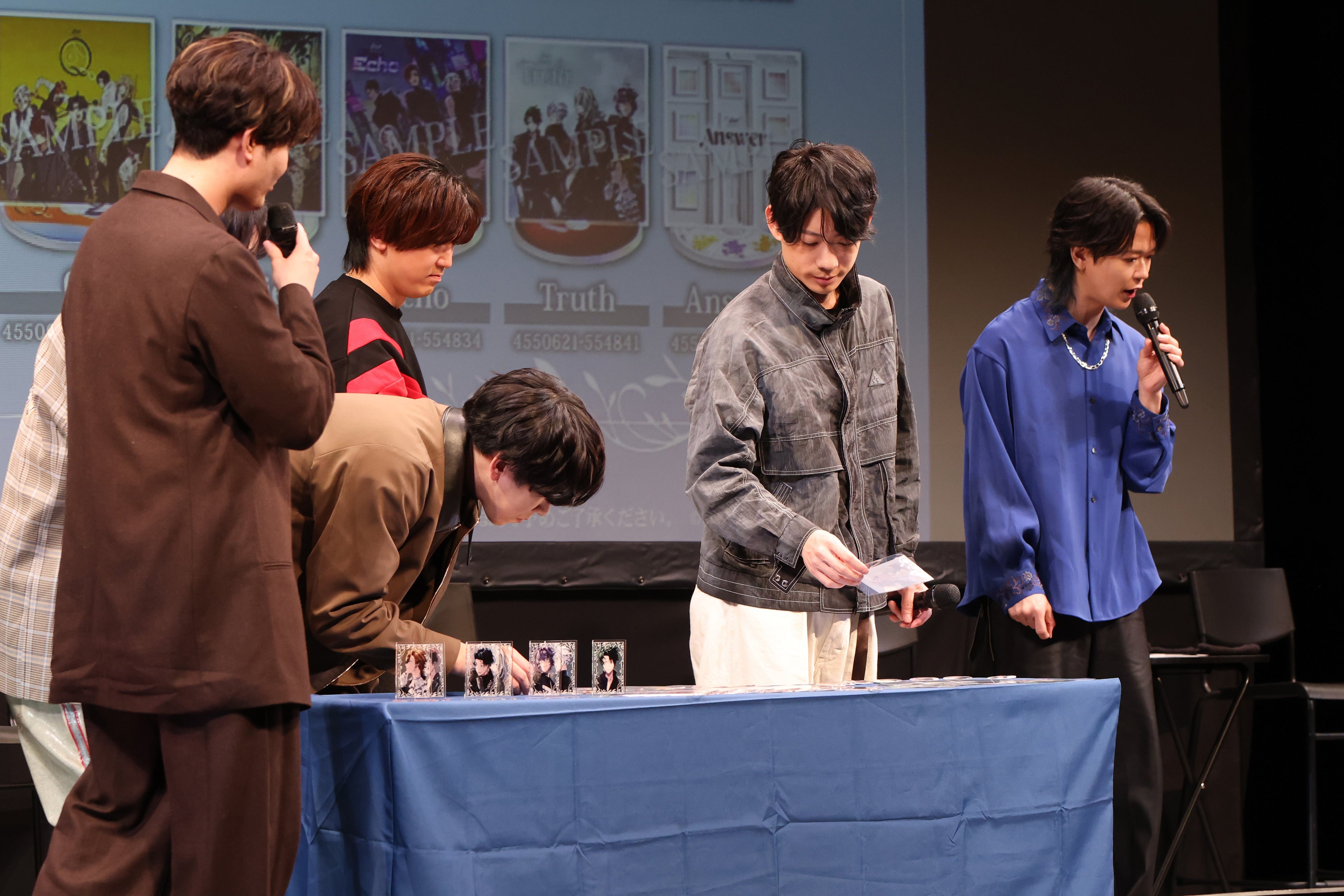 和やかな空気で進行してきたイベントもいよいよ終盤へ。お待ちかねのプレゼント抽選会では、中身の見えない箱から本イベントのチケット半券を引き当てる形式で、キャスト自らが当選者を選出しました。1部2部と幸運な3名の来場者にキャストサイン入り入場特典ブロマイドセットがプレゼントされ、会場からは温かな拍手が送られます。