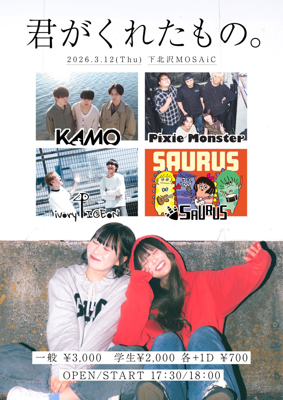 さらに3月12日(木)にはバンド初となる主催LIVE「君がくれたもの。」の開催が決定、現在チケット発売中。