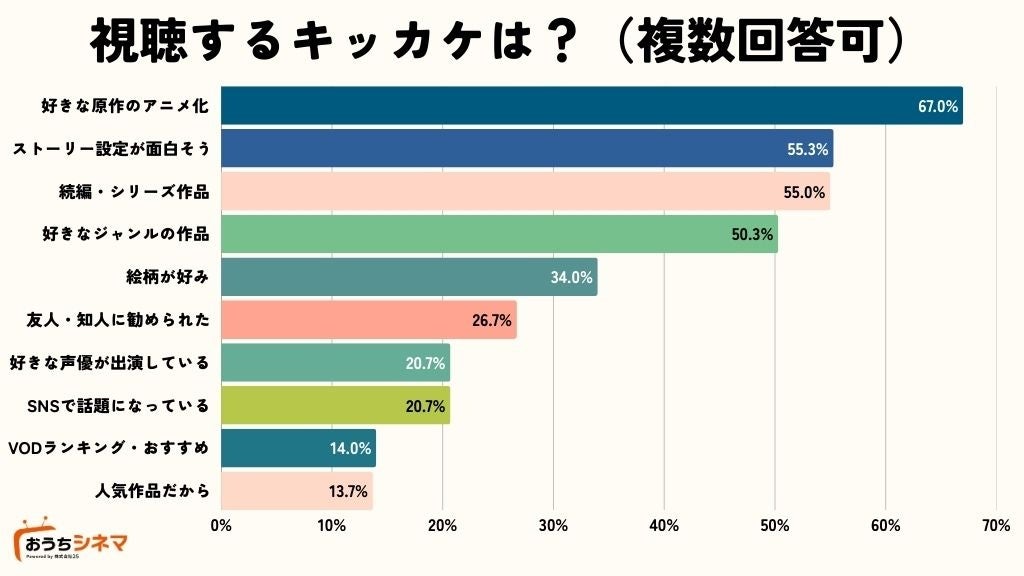 ・新しいアニメを選ぶきっかけ1位は「好きな原作のアニメ化」(67.0%)