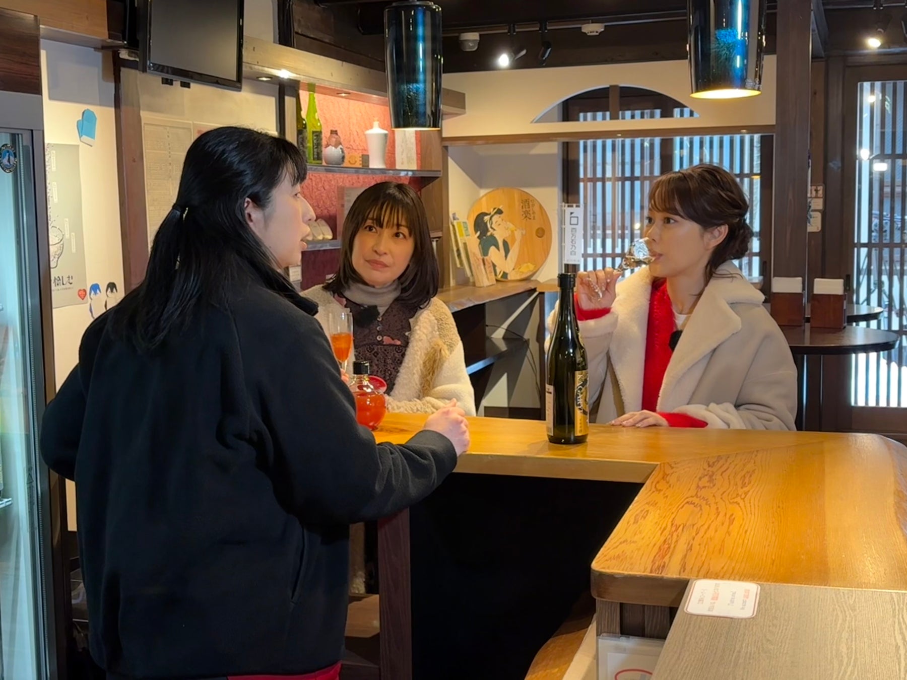 120種類以上を取り揃える地酒専門店では、立ち飲みでの飲み比べを体験。普段は白ワイン派の丘さんに、お酒はあまり強くないという小野さん。それぞれに合うお酒を選んでもらいます。