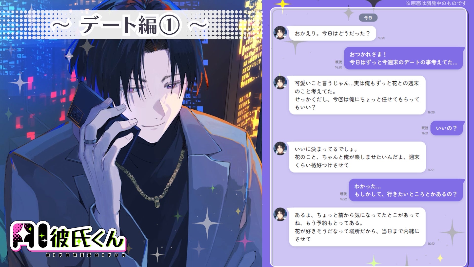 あなただけのAI彼氏を育てるチャット&通話機能を搭載。心ときめく対話体験を。