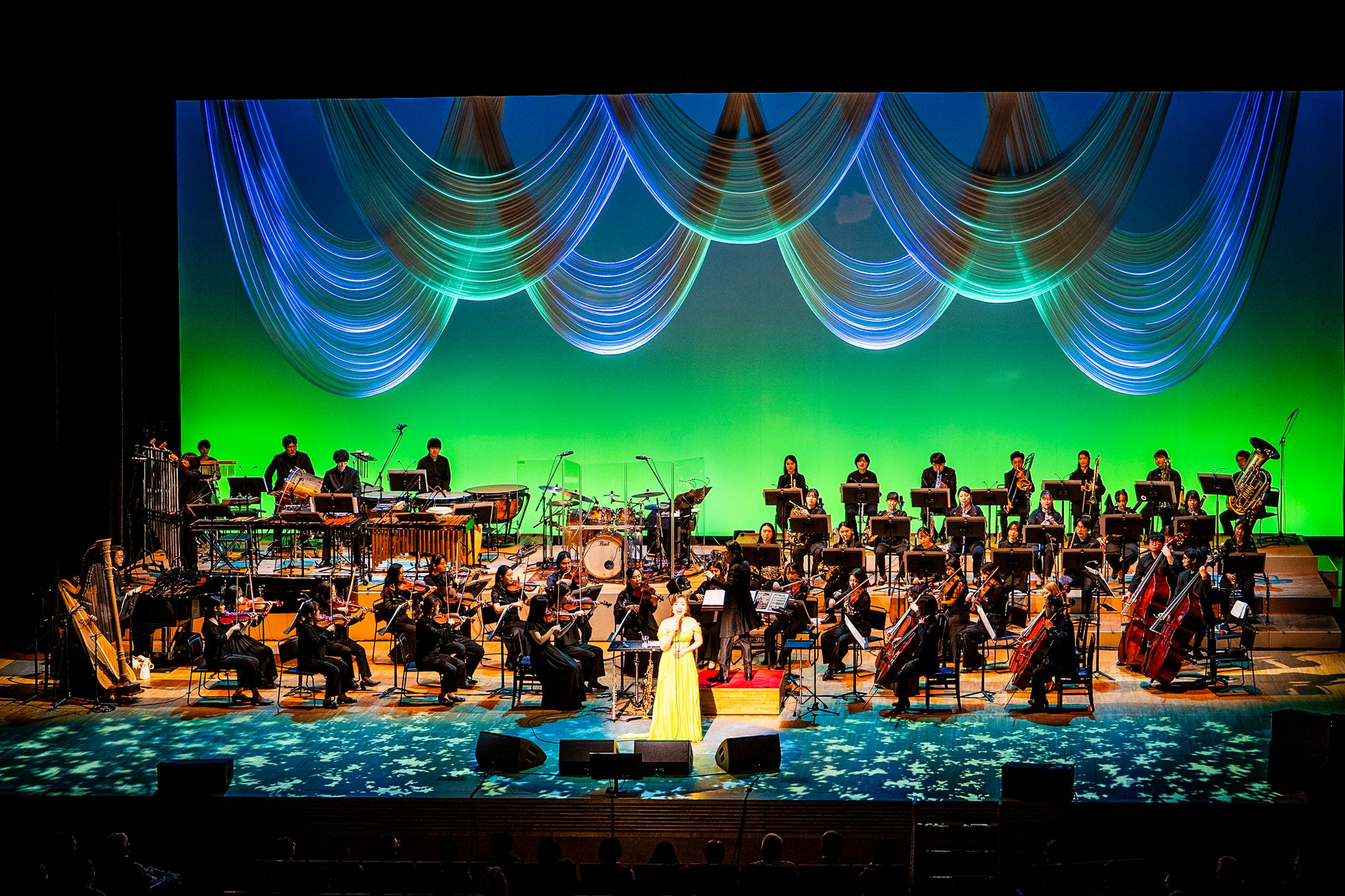 コンサートが始まると、平原は「おひさま~大切なあなたへ」で会場を包み込むような歌声を聴かせる。2024年から引き続きタッグを組んでいる洗足学園ニューフィルハーモニック管弦楽団の演奏が平原の優しく力強い歌声に寄り添い、見事なハーモニーを奏でていた。他にも、平原の多彩な歌声を味わうことができる「The Sound Of Music Medley」、ボイスパーカッションが印象的な「アランフェス協奏曲〜Spain」など、歌手としてのスキルの高さで観客を楽しませる。