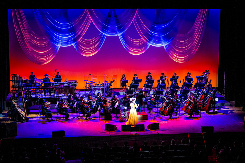 コンサートが始まると、平原は「おひさま~大切なあなたへ」で会場を包み込むような歌声を聴かせる。2024年から引き続きタッグを組んでいる洗足学園ニューフィルハーモニック管弦楽団の演奏が平原の優しく力強い歌声に寄り添い、見事なハーモニーを奏でていた。他にも、平原の多彩な歌声を味わうことができる「The Sound Of Music Medley」、ボイスパーカッションが印象的な「アランフェス協奏曲〜Spain」など、歌手としてのスキルの高さで観客を楽しませる。
