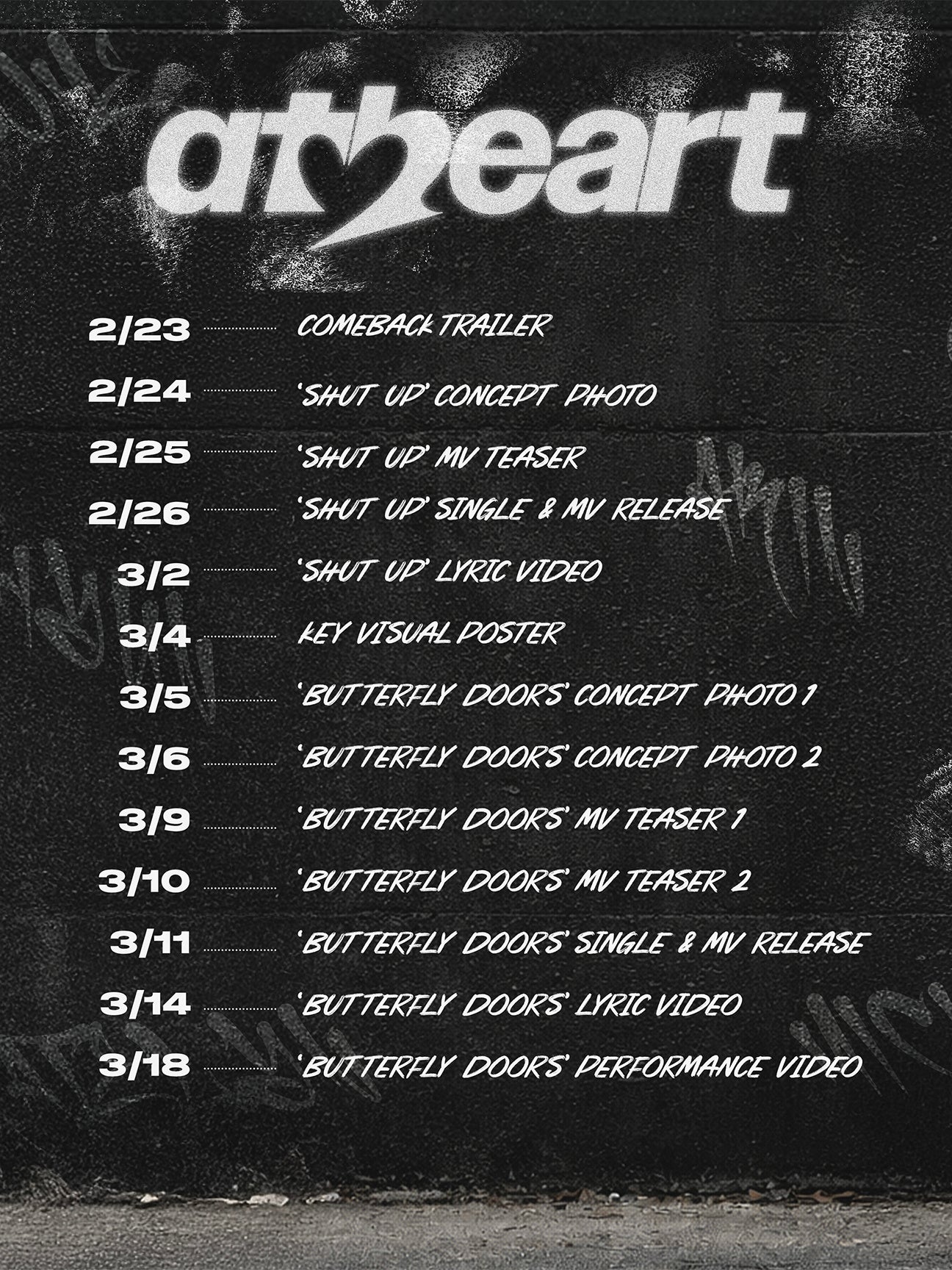 AtHeart、カムバックスケジューラーをサプライズ公開!2月26日『Shut Up』→3月11日『Butterfly Doors』発売…新たなチャプターの始まり!