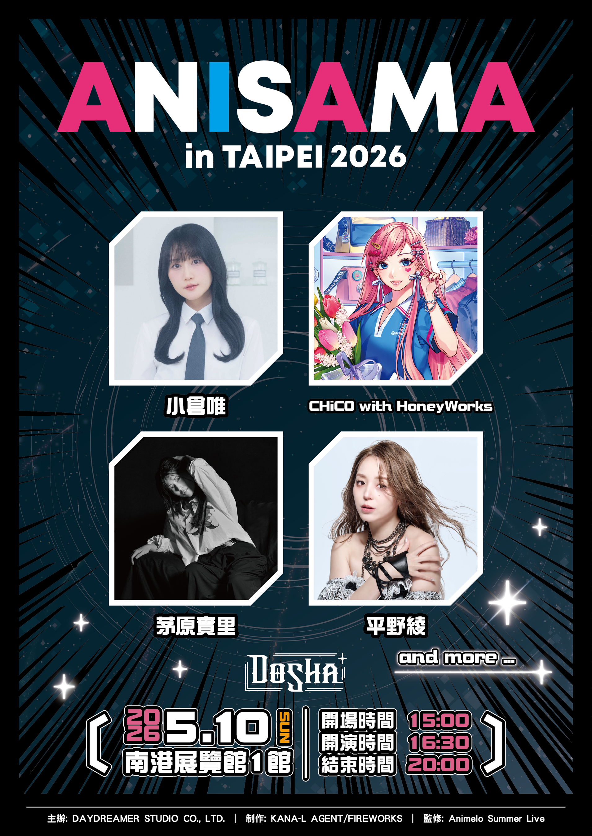 2026年5月10日(日)に台北南港展覧館1館 で開催する「ANISAMA in TAIPEI 2026 -DOSHA!-」の第一弾出演アーティストが発表!
