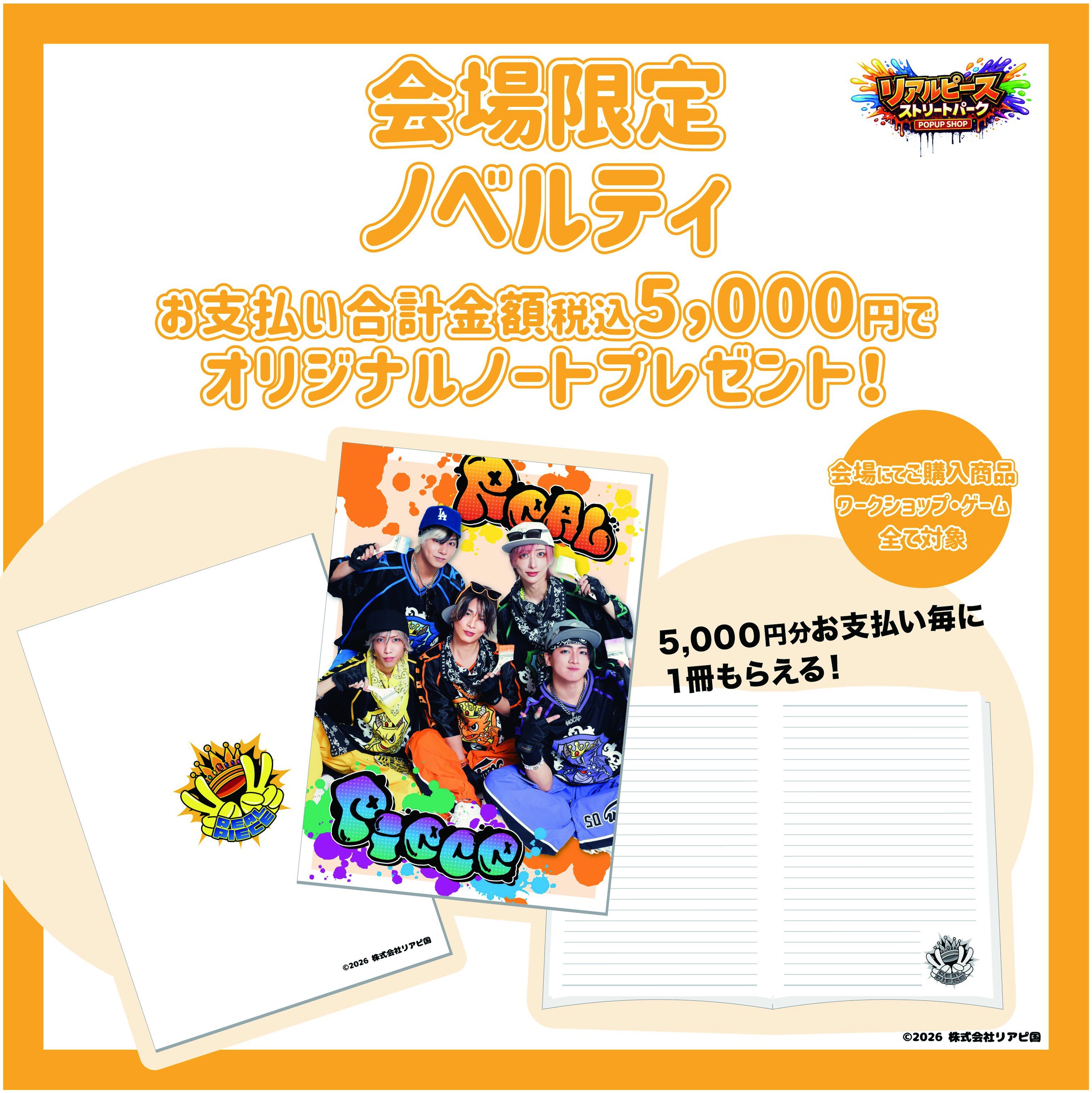 会場内にて1会計、税込5,000円購入ごとで【オリジナルノート】を1冊お渡し!