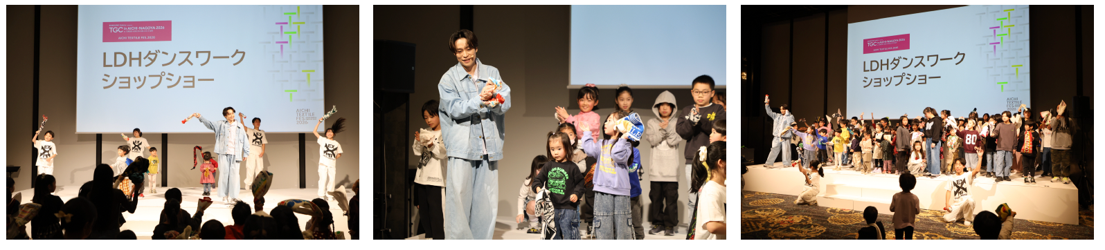 『TGC in あいち・なごや 2026』のサテライトイベントとしてTGC in あいち・なごや前日2月14日(土)に開催した『AICHI TEXTILE FES. 2026』内特設ステージにて、「LDHダンスワークショップショー」を実施しました。「W TOKYO×LDH JAPAN 地方創生プロジェクト」の一環で、愛知県では初開催となったダンスワークショップショーには、EXILE TETSUYAが出演。本プロジェクトでは、約600名の参加者が一体となり、LDH所属アーティストの楽曲や様々な音楽に合わせたダンスを楽しみ、身体を動かしました。