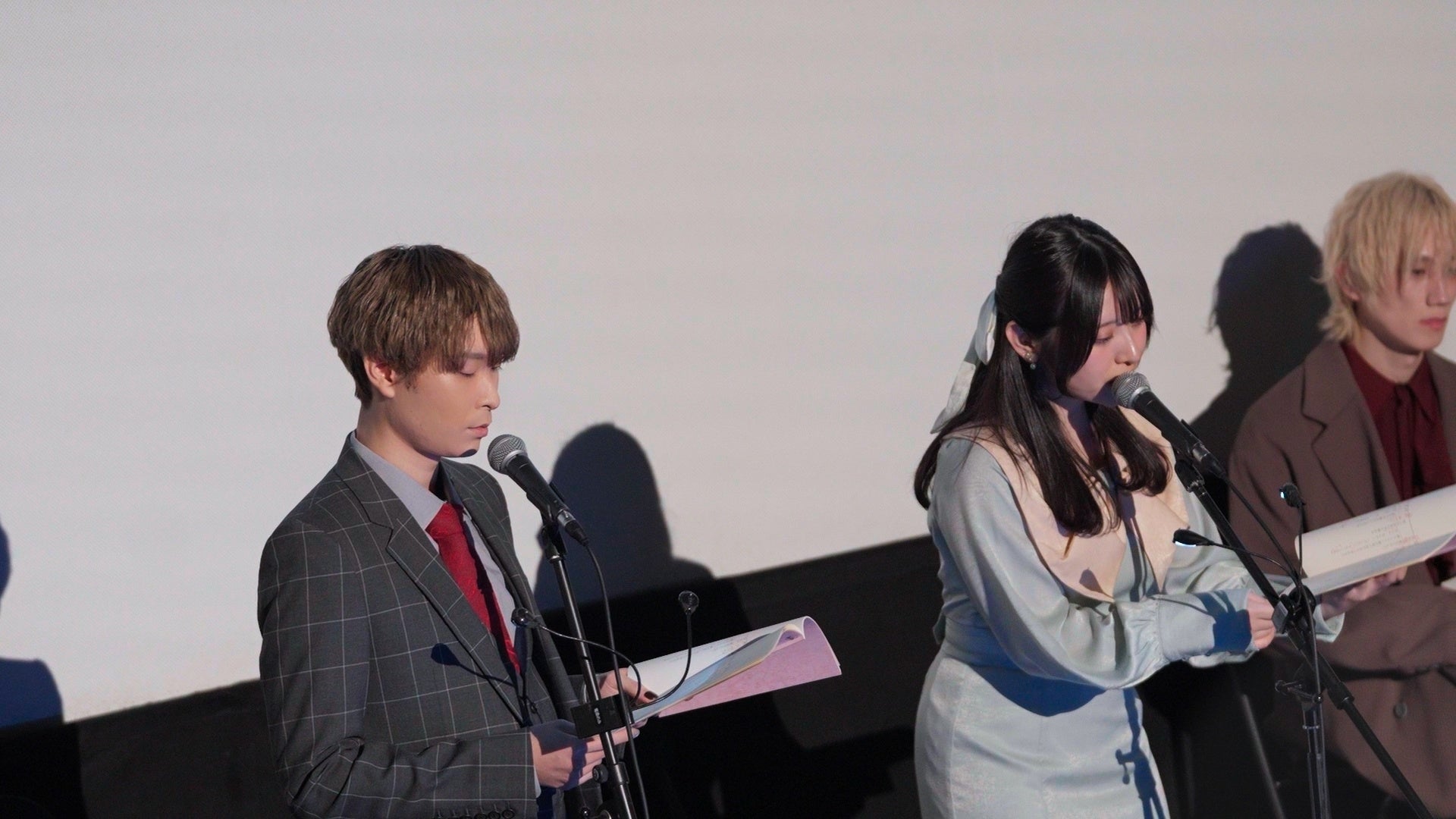 本公演の最大の特徴は、よくある朗読劇ではなく、「新人声優の収録現場見学」というコンセプトで行われた点だ。観客は「新人声優」という設定で客席に座り、ステージ上の先輩声優(キャスト)の演技を見学するだけでなく、物語の一部として収録に参加するという、これまでにない参加型・没入型の演出が話題を呼んだ。