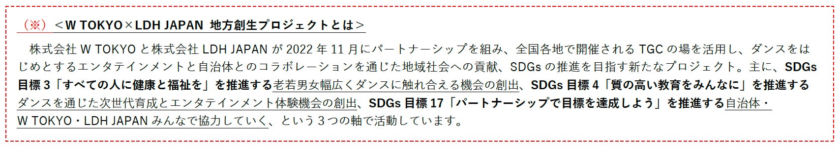 アーティストライブ3組目には、EXILE TRIBE初のメンバー7人全員がマイクを持ち、ダンス、ボーカル、ラップに加え、アクロバットまでこなす実力派ダンス&ボーカルグループBALLISTIK BOYZが、「W TOKYO×LDH JAPAN 地方創生プロジェクト(※)」の一環として、地元・愛知県立昭和高等学校 ダンス部とスペシャルコラボレーション!LDH JAPAN が運営するダンススクールEXPG STUDIOのインストラクターによるダンスの直接指導や、BALLISTIK BOYZとのリハーサルを経て、2曲目の『Stardust Forever』で、スペシャルコラボレーションパフォーマンスを披露しました。トークパートでは、ダンス部を代表してダンスリーダーの千田結衣花(せんだ ゆいか)さんが「TGCという大きな舞台でBALLISTIK BOYZと一緒に踊ることができてうれしかったし、幸せでした。」と語ると、BALLISTIK BOYZの砂田将宏は「皆さん、完璧!今回コラボした曲は青春がテーマだったので、僕らも皆さんと青春を味わうことができました!」とパフォーマンスを振り返りました。
