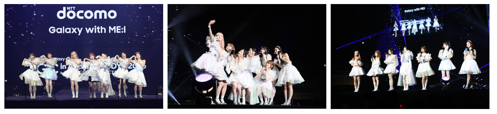 さらにトーク後には、NTTドコモの「Galaxy with ME:I」タイアップソング『Best Match』を世界初披露!歌詞に「Galaxy」が登場することから、スマホをスワイプするような振り付けや、“アンテナ”をイメージした“ビビビダンス”が取り入れられており、MOMONAは「とても明るくてさわやかな曲です。かわいい注目ポイントがたくさんあるので、1秒たりとも逃さずに観ていただきたいです。」と見どころを語りました。また会場のSamsung Galaxyブースでは、『Best Match』のパフォーマンスを1人ずつSamsung Galaxyで撮影したチッケム(推しカメラ)をダウンロードできる「ミリ波」体験も実施しました。