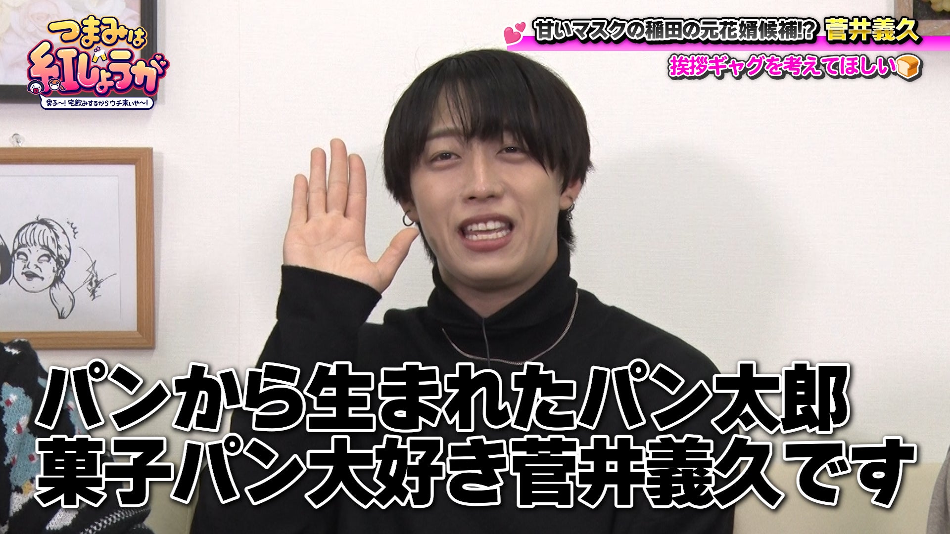 紅しょうがが、“宅飲み”スタイルでステキな男子ゲストと、食べて飲んでトークするBSよしもとの番組『つまみは紅しょうが 男子~!宅飲みするからウチ来ぃや~』(毎月第3・4土曜23:30~)。2月28日(土)の放送回では、前週からの引き続きで、“稲田美紀の元花婿候補”だった、アイドルグループ“甘党男子”の菅井義久(すがい あきひさ)が登場します。