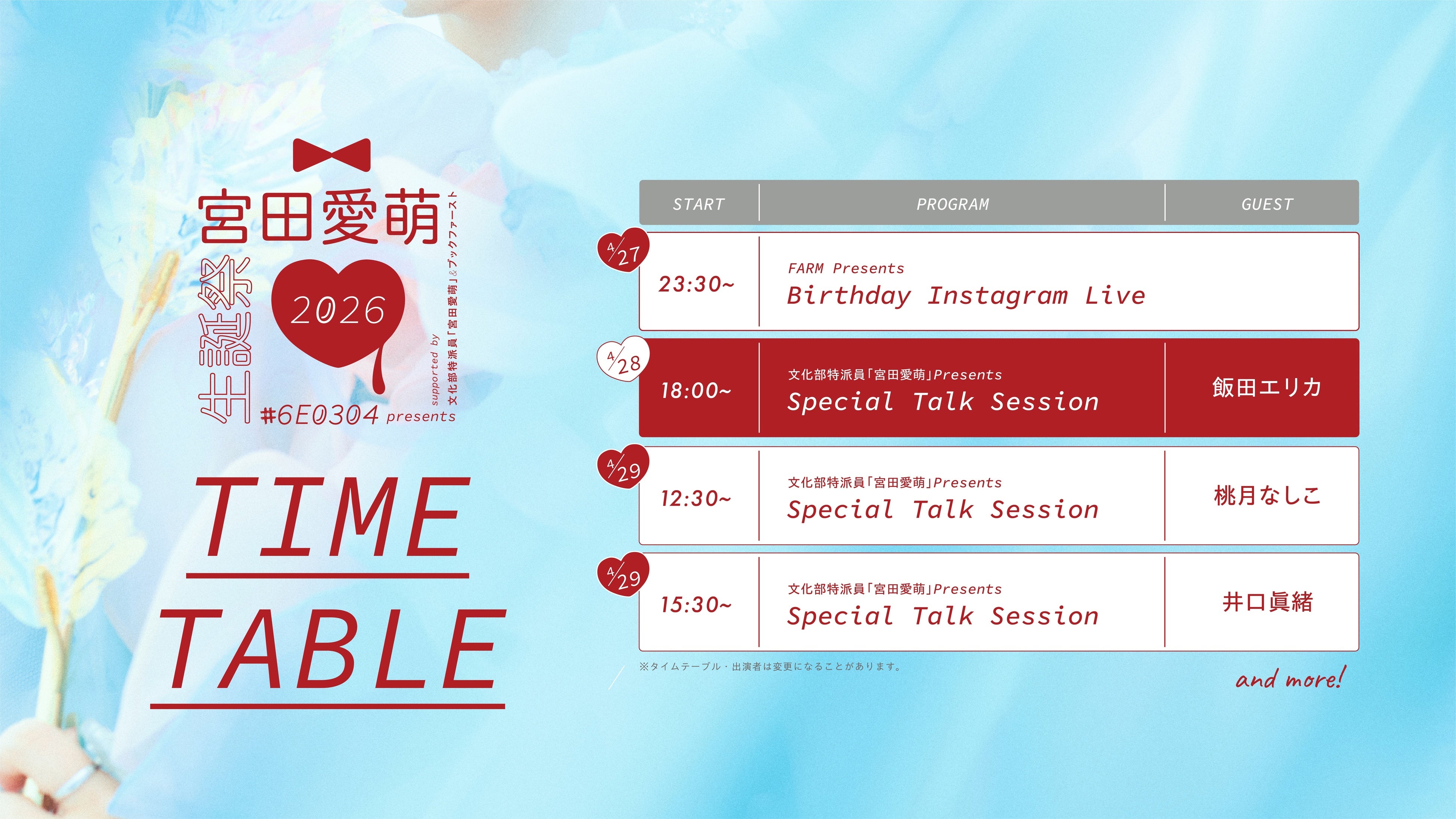 『宮田愛萌生誕祭2026』イベントタイムテーブル