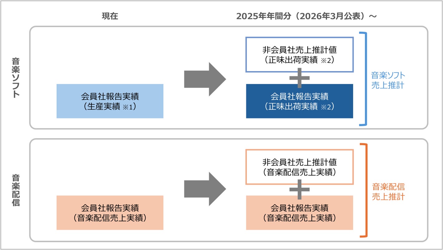 初回は、2025年1月から12月までの「音楽ソフト・音楽配信売上推計」について、2026年3月上旬に公表する予定です。以降は四半期ごとに公表いたします。