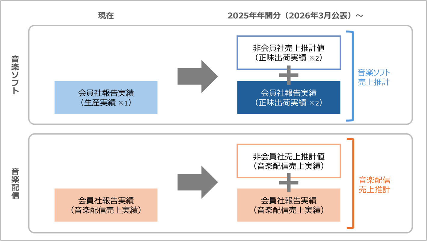 初回は、2025年1月から12月までの「音楽ソフト・音楽配信売上推計」について、2026年3月上旬に公表する予定です。以降は四半期ごとに公表いたします。