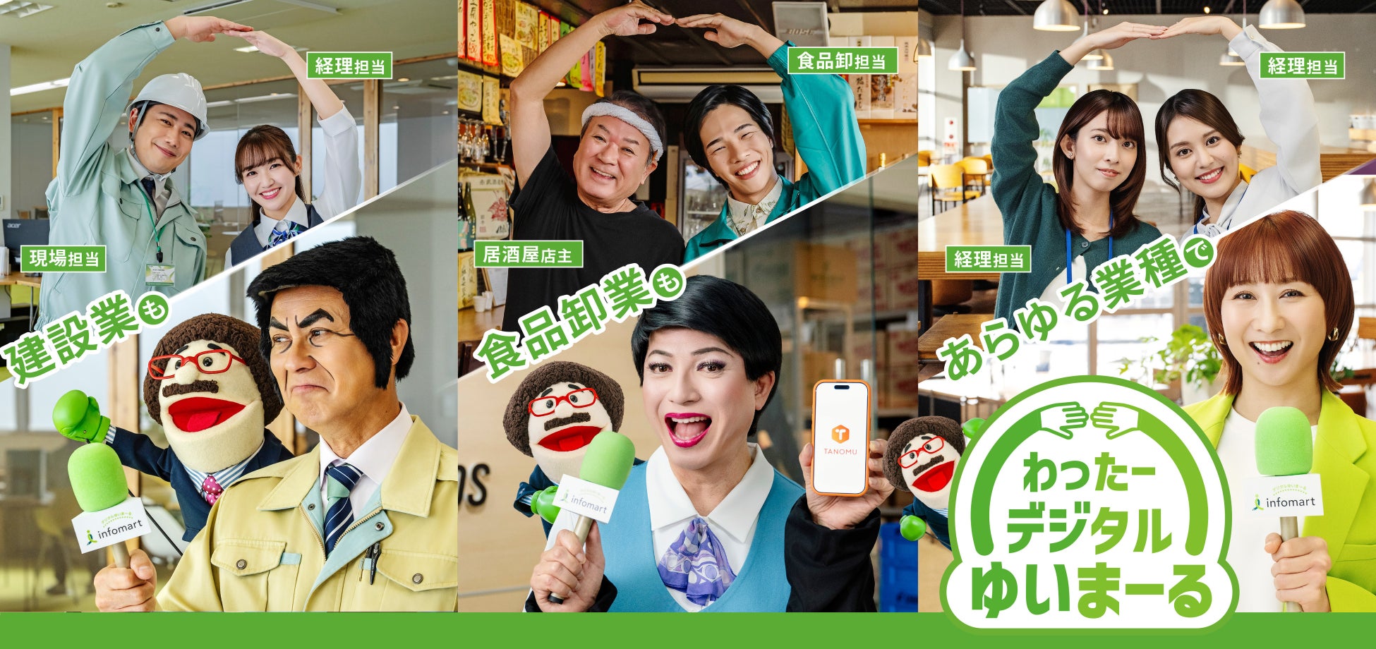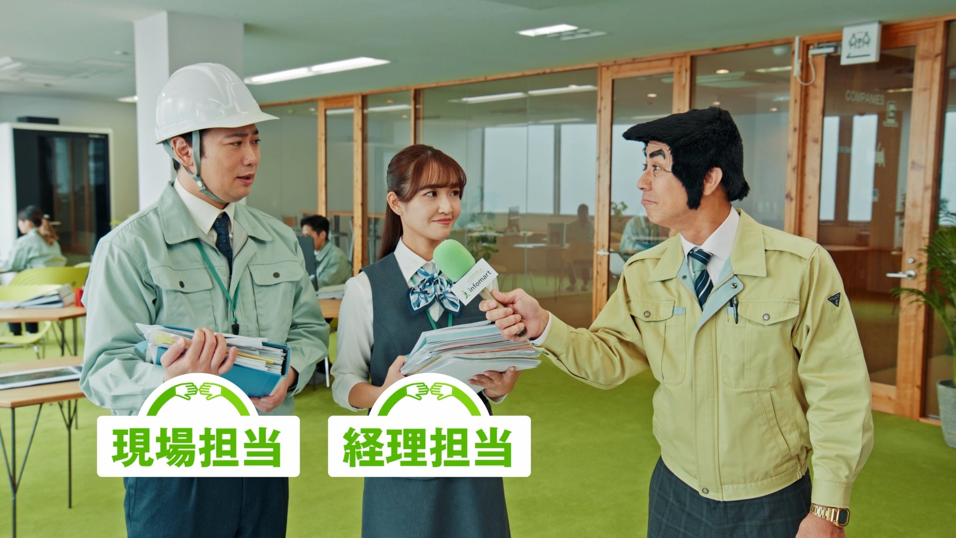 デジタルの力であらゆる業務を効率化する株式会社インフォマート(本社:東京都港区 代表取締役社長:木村 慎、以下「当社」)は、沖縄を代表するタレントの具志堅 用高さん、護得久 栄昇さん、魅川 憲一郎さん、糸数 美樹(ミキトニー)さんを起用した、当社が提供する「BtoBプラットフォーム」の新テレビCM「会社訪問 建設業」篇「会社訪問 請求書」篇と、「TANOMU」の新テレビCM「会社訪問 食品卸業」篇を本日より沖縄県で順次放送開始します。
