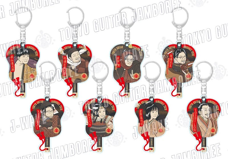出演者ひとりひとりのイラストが施されたアクリルキーホルダー。
