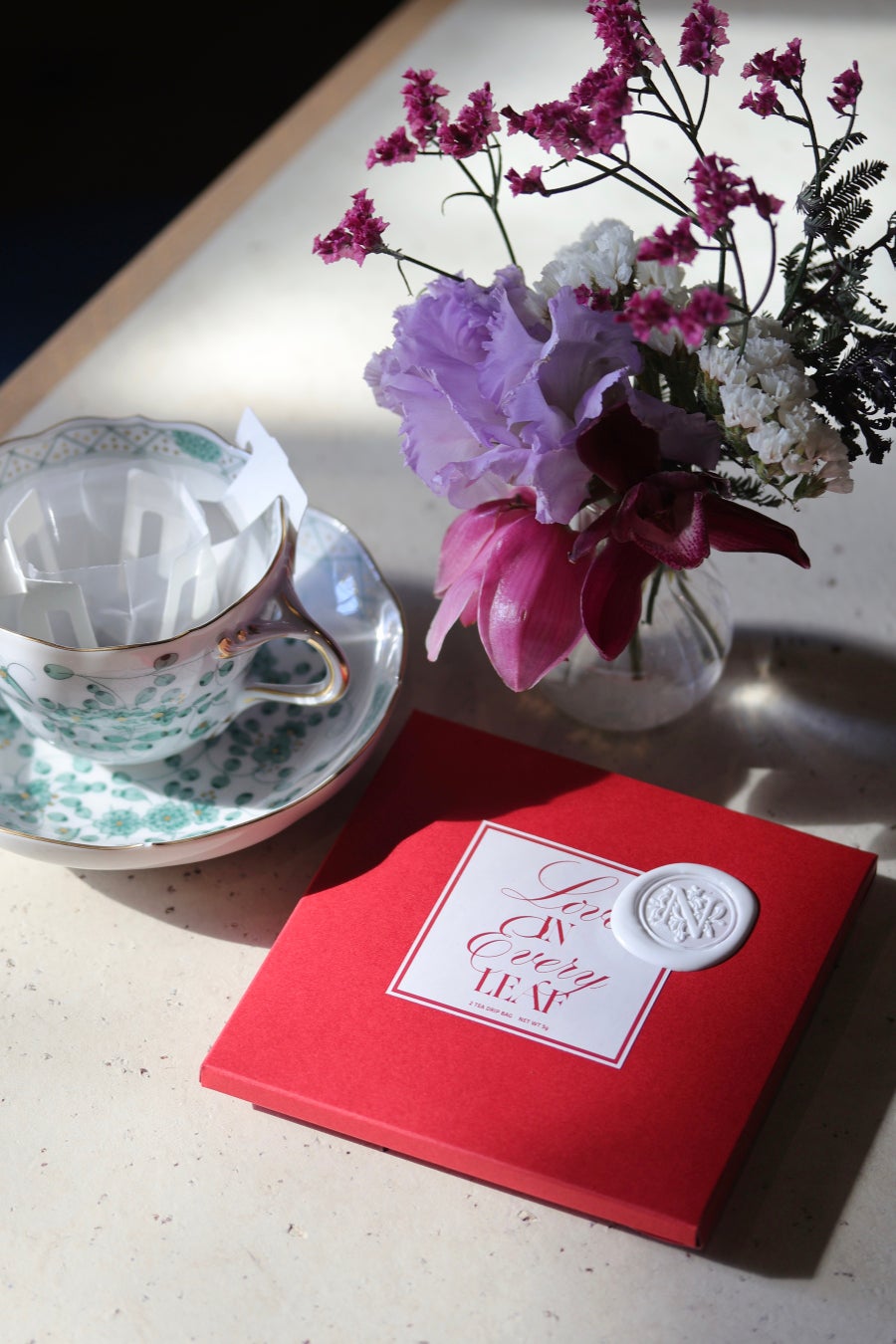 本イベントにご参加の皆様へ、入場者特典としてバレンタイン限定デザインのティー・ドリップをプレゼントいたします。本作がバレンタインデー直前の出来事を描いていることにちなみ、ケイト・ウィンスレット演じるクレメンタインの印象的な髪色が4回変化することに合わせて、全4種の茶葉をご用意。いずれか1点をランダムで配布いたします。