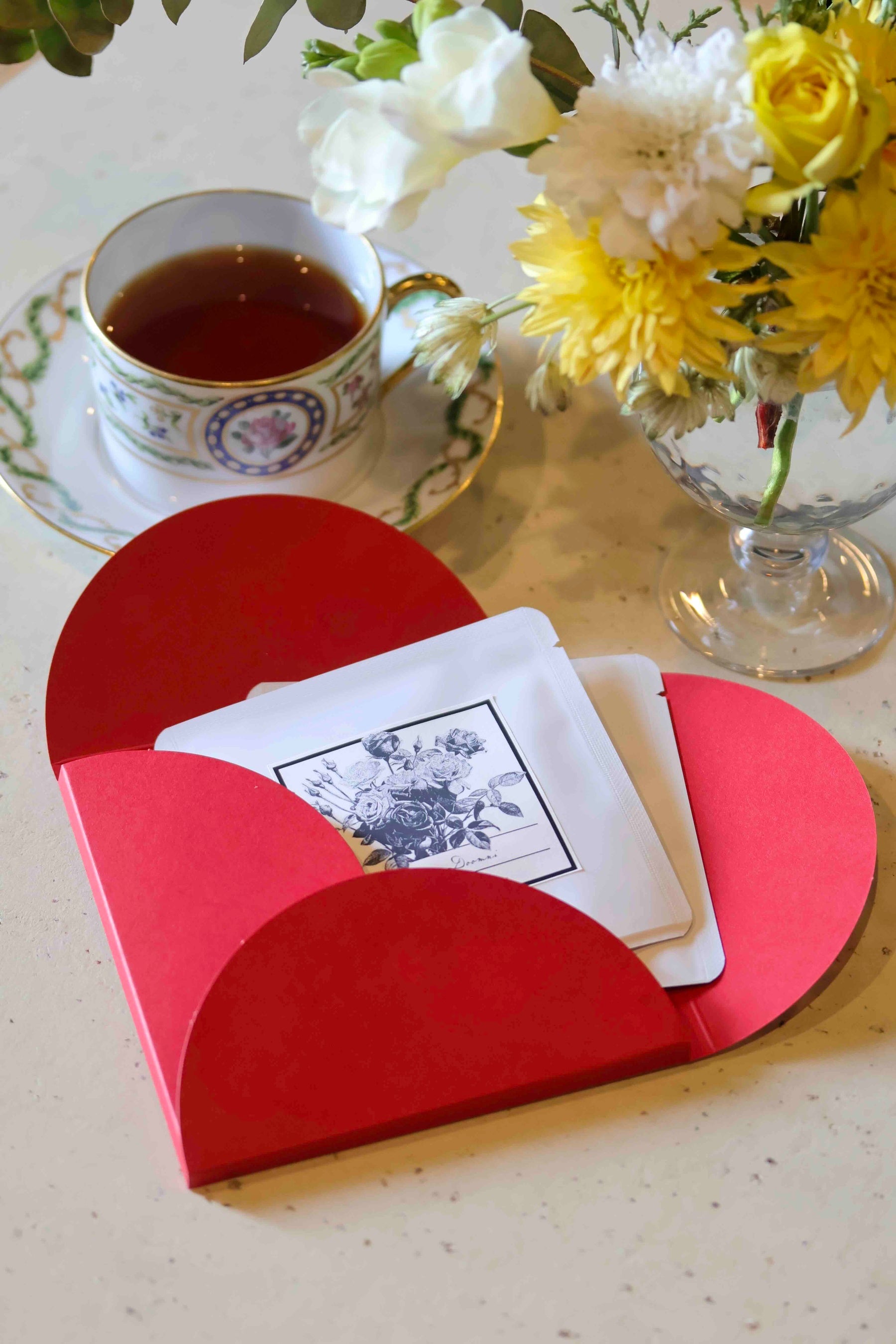 本イベントにご参加の皆様へ、入場者特典としてバレンタイン限定デザインのティー・ドリップをプレゼントいたします。本作がバレンタインデー直前の出来事を描いていることにちなみ、ケイト・ウィンスレット演じるクレメンタインの印象的な髪色が4回変化することに合わせて、全4種の茶葉をご用意。いずれか1点をランダムで配布いたします。