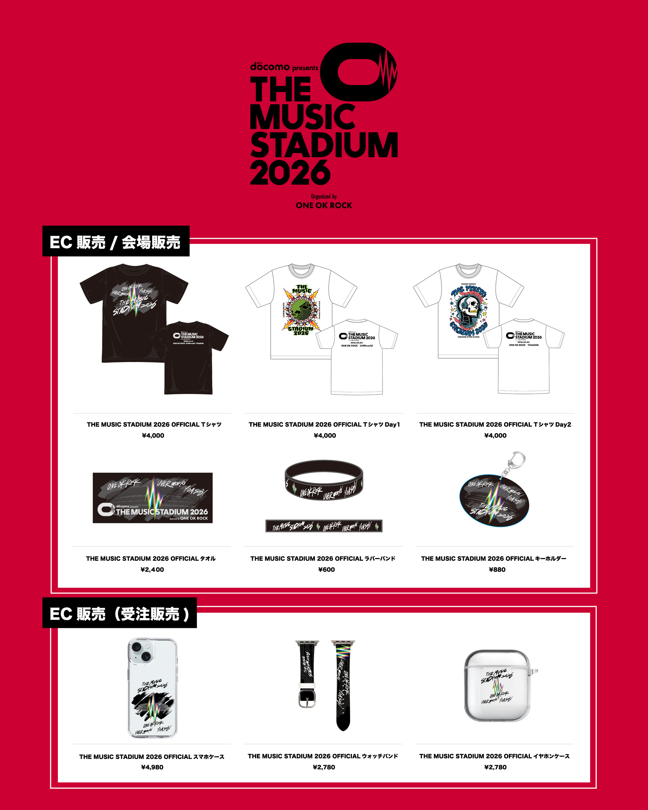 株式会社NTTドコモ(以下、ドコモ)は、2026年4月4日(土)と2026年4月5日(日)にMUFGスタジアム(国立競技場)で開催する「docomo presents THE MUSIC STADIUM 2026 organized by ONE OK ROCK」(以下、本イベント)のオフィシャルグッズを2026年2月27日(金)から事前販売開始します。