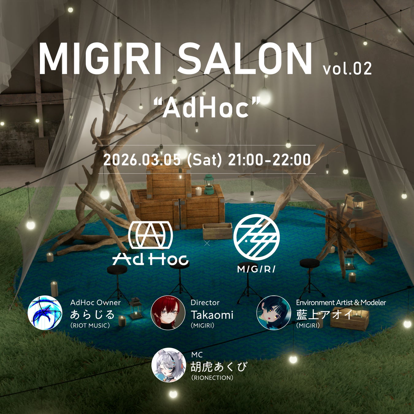 また、3月5日(木) 21:00からAdHocにてトークイベント「MIGIRI SALON vol.02 “AdHoc“」を開催します。