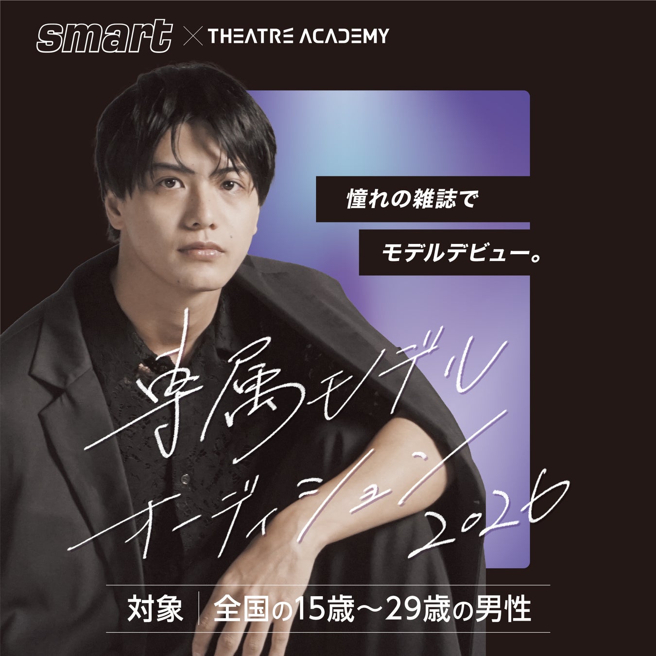 芸能プロダクション テアトルアカデミーと、宝島社のメンズファッション誌『smart』による特別企画。グランプリに選ばれた⽅は、専属モデルとして『smart』の誌面に約1年間レギュラー出演!