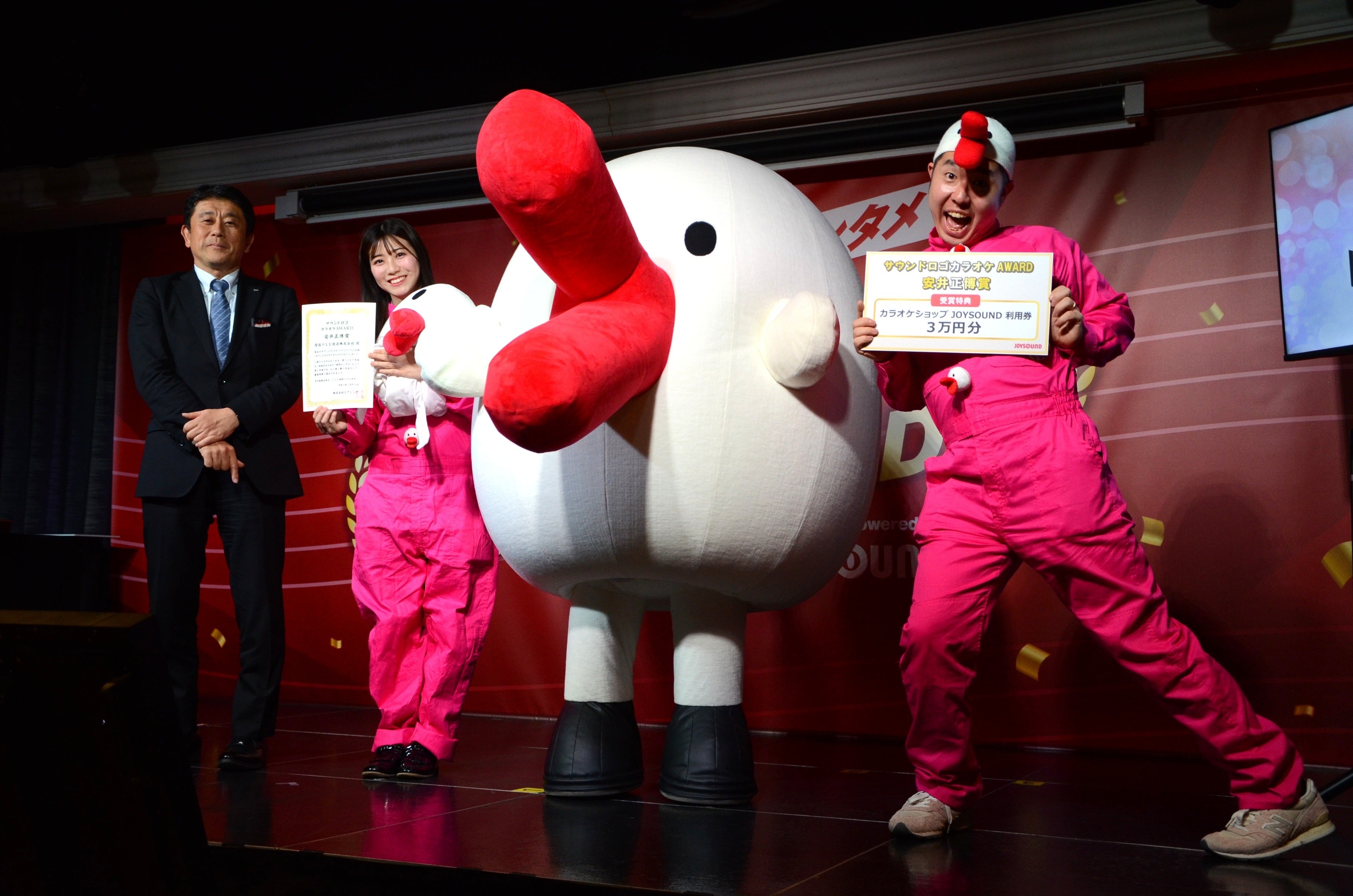 表彰式では、代表者が「初代サウンドロゴカラオケAWARDを突破(TOPPA!!!)できるとは思っていなかったので、驚いています!」と喜びのコメント。祝福ムードに包まれる中、表彰状とトロフィーが授与されました。副賞として、TOPPANホールディングスには、CM音楽やテレビ・ラジオ・ 映画など、幅広いメディア向けの音楽制作を手がける株式会社愛印による、サウンドロゴの楽曲化(サウンドロゴを含む楽曲を制作)、およびそのカラオケ配信権が贈られました。