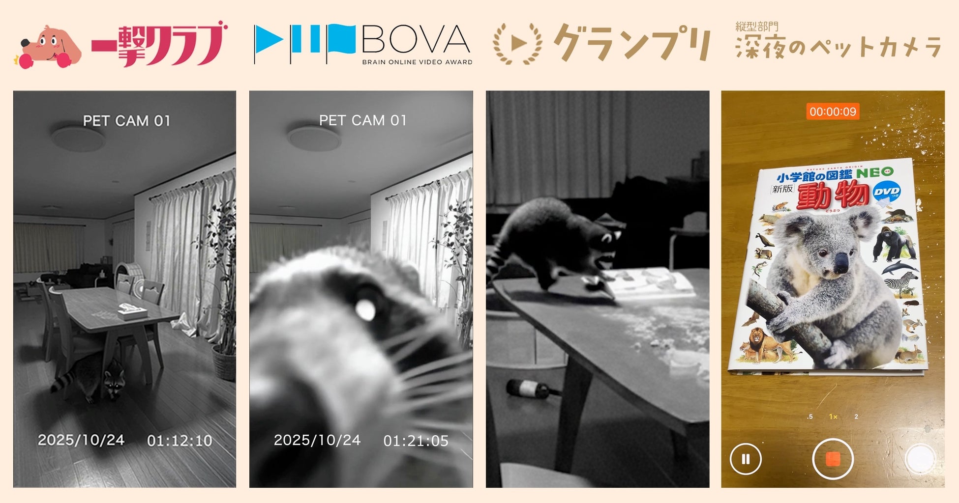 コンセプトは「実写×AIの融合」です。小学館の図鑑NEOが「本物=動物でさえ夢中にさせる」というアイデアを、ペットカメラを使ったモキュメンタリーにしたら面白くなる予感がありました。ただ、「AIでつくりましたよ感」が香ると途端に冷めてしまうので細心の注意を払っています。実写で撮影しながら、その場で何度も何度も何度もアライグマの生成を繰り返しています。リアルに感じながらもクスッと笑えるバランスの表現を目指しました。